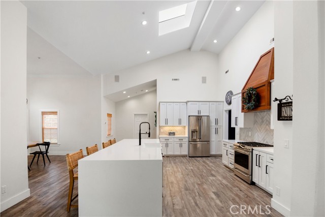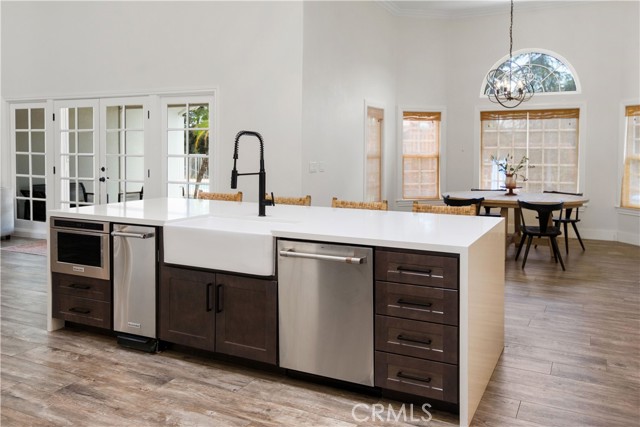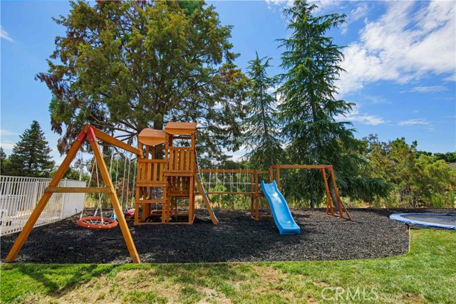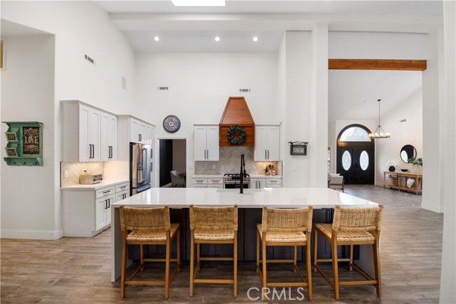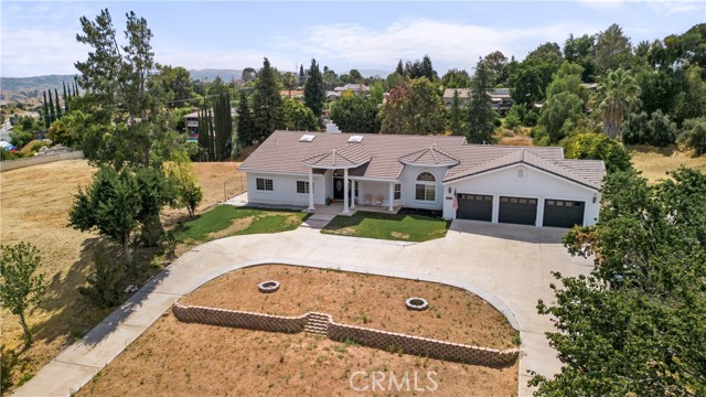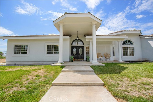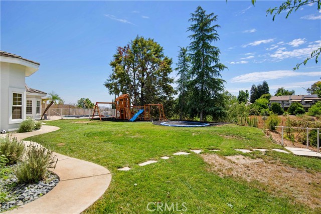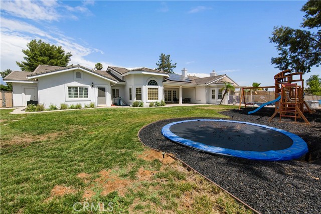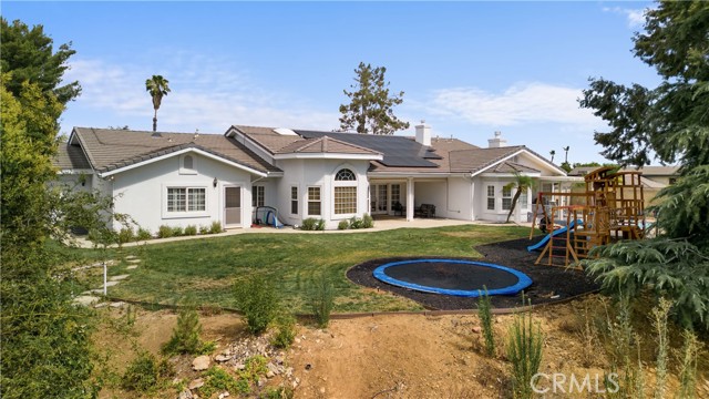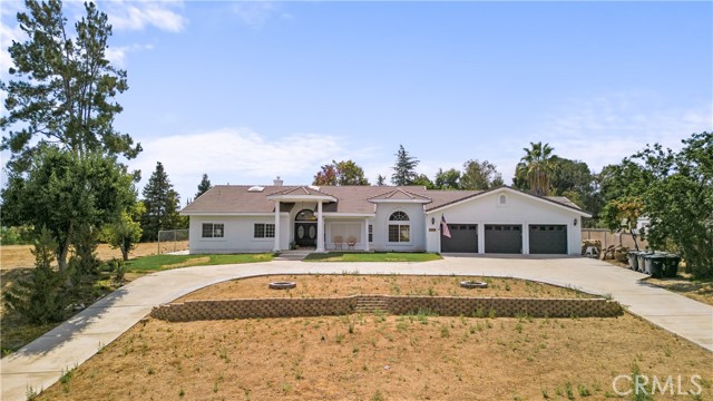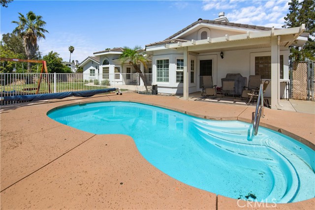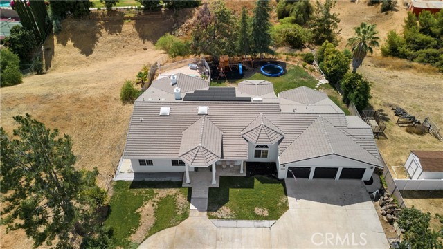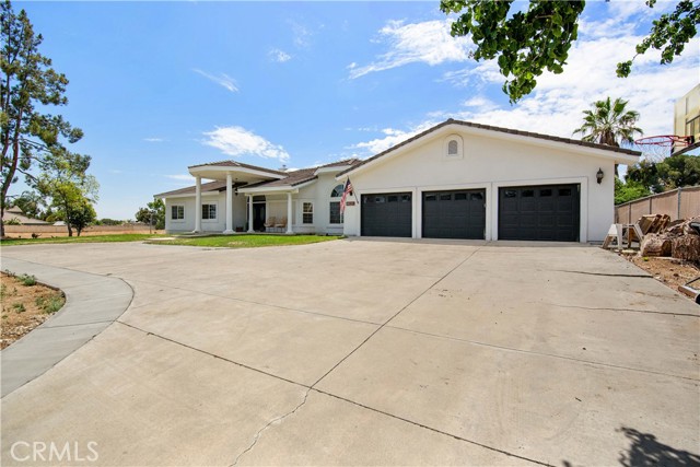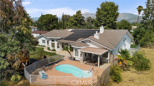 Showcase one acre estate in the foothills of South Redlands featuring canyon, trees and Sunset Views. This home is a Light & Bright, spacious single story home with 20 foot ceilings and features a gorgeous remodeled kitchen with massive quartz countertop island with the waterfall edge and stainless appliances. The floorpan is wide open and is a special place for entertaining friends and family with the built in shelving in the family room on either side of the brick fireplace. There is a dedicated open, high ceiling dining room in addition to a breakfast nook area off the kitchen and available bar stool seating at the kitchen island. The whole has has wood look tile flooring that is easy to maintain and clean with pets or kids. The floorpan is arranged with double master suites at the opposite ends of the home that would work very well for extended family living situations for in laws, grandparents, adult kids, etc. There is a kid paradise in the backyard, with a gated in ground pool, a play set area and a trampoline too; backyard is fully fenced to keep pets and kids secured. The garage is an oversized massive 3 car garage that allows plenty of room for a workshop and has tons of storage space above in the attic area overhead. This home also has water shares to keep water bill prices lower and solar panel system including a generator/storage unit to make the electric bill a lot more affordable. In front there is a massive circular driveway and concrete parking area that can accommodate many cars, an RV, boat, and more. The house feels very private on its one acre lot but it is also a two minute drive away from the 10 freeway entrance at Yucaipa Blvd and 2 minutes away from the highly desirable Mariposa Elementary School in the Redlands School District. Make your appointment to view this special property and come and see everything it has to offer.