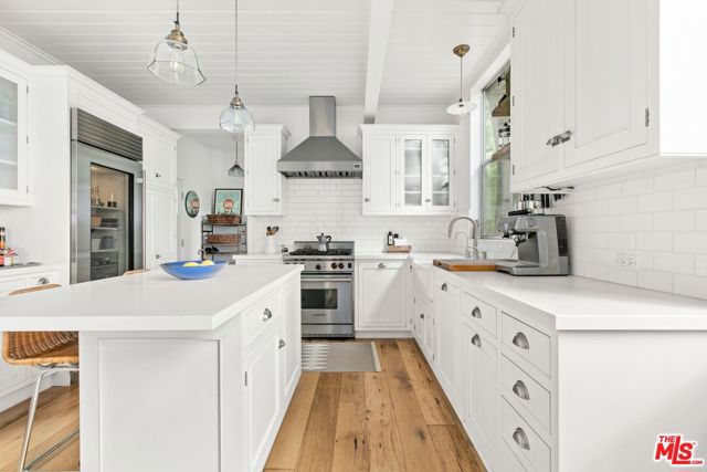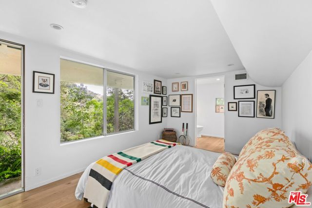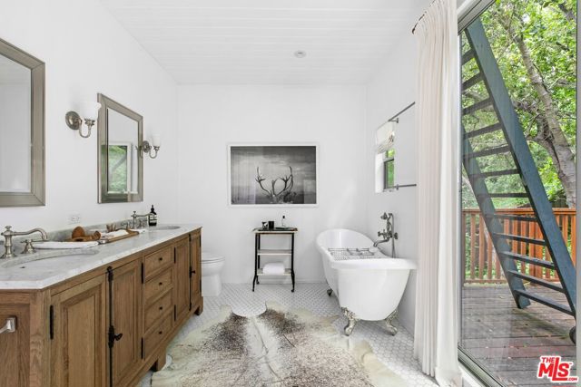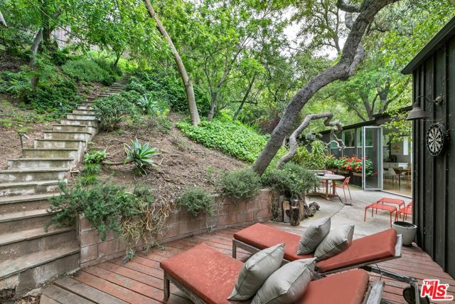 Secluded Mid-Century treehouse nestled in the Hollywood Hills. This residence provides a tranquil retreat with breathtaking views of the canyon. Natural light fills the open layout by way of oversized windows creating a warm and inviting ambiance throughout. The kitchen is equipped with top-of-the-line appliances, and both indoor and outdoor dining areas offer ample entertaining space. The primary suite features a private balcony and stunning ensuite with clawfoot tub, dual showers, and sliding doors to verdant deck. The charming home is completely turn key and available for a long term lease.