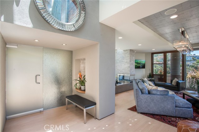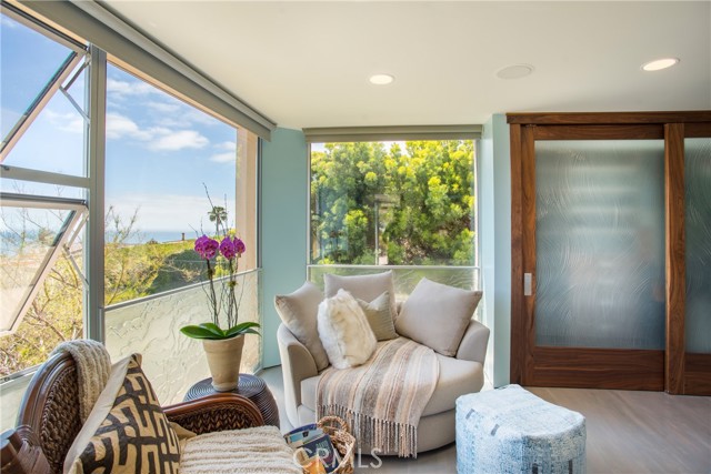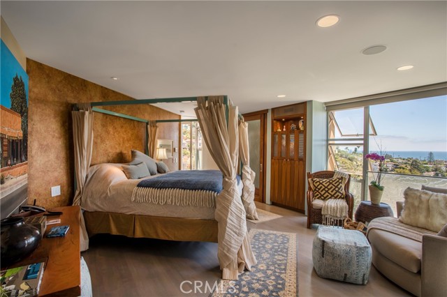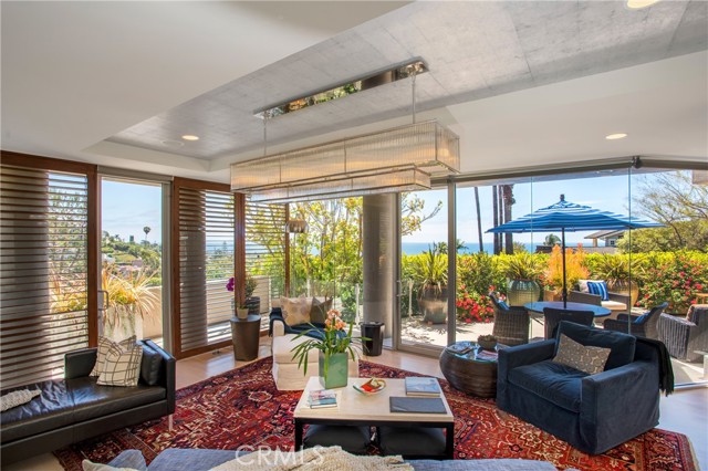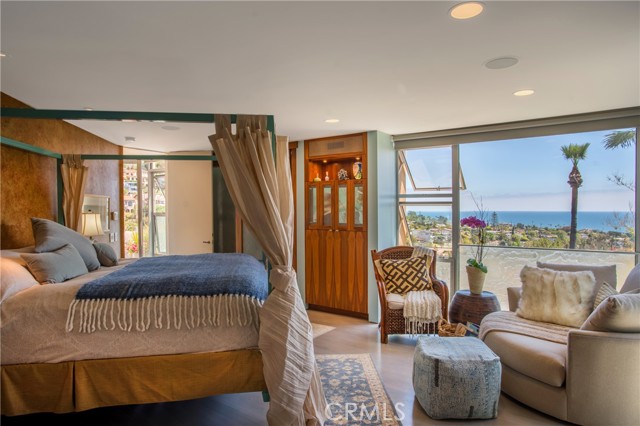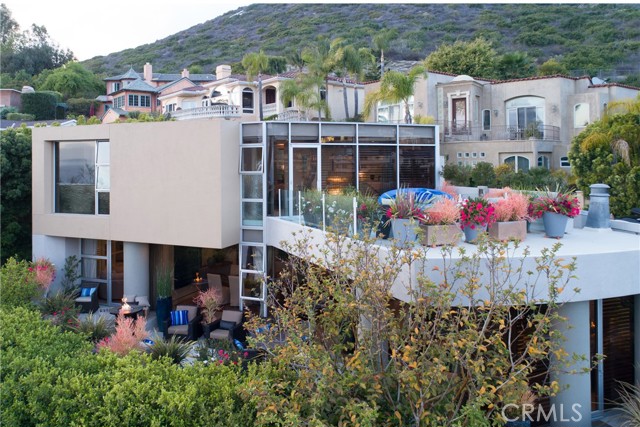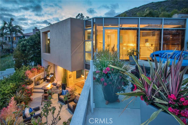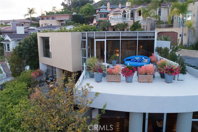 Ready to lease! Enjoy panoramic ocean views from this distinctive Contemporary Modern home with Air Conditioning! This gorgeous sculptured glass and steel custom property occupies a premier location sitting high above the village with stunning views, yet just minutes to beautiful beaches, shopping and restaurants. Warm woods combine with concrete and glass to create a remarkable residence. The layout is tremendously flexible. The top floor holds both the primary suite and a secondary bedroom, along with an ocean and city lights view terrace. The mid entry- level holds ocean-view living spaces with another bedroom suite, while the lower level offers gym space with equipment, awesome office along with vast wine cellar, laundry room and the 4th bedroom. Two car direct access garage plus two uncovered spaces in driveway. All with an emphasis on low maintenance ‘lock and leave’, and an ability to office from home. Fixtures and appliances are all top notch. Will entertain longer or shorter lease offers. Thank you!