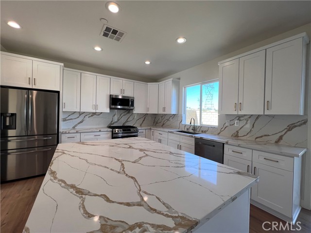 Experience the essence of luxury and elegance in this magnificent Residence located in the prestigious area of Victorville. This immaculate home features 4 bedrooms & 3 bathrooms. The bedroom downstairs is spacious. Bing doorbell. The lovely and efficient floor plan greets visitors with a large entrance leading to the formal living and dining rooms. Upstairs is a large Den leading to a Large Balcony. All interior was recently painted with a neutral color. Upgraded ceiling fans. This Elegant Residence has a living space of 2,588 sqft and a large lot size of 7,286 sqft. Recessed lights. A spacious living room with a dining room, fresh-and-neutral-colored kitchen design with quartz countertops, NEW stainless steel appliances, including refrigerator, stove & dishwasher, and a Large center island. The kitchen is equipped with plenty of storage, including a handy pantry. Huge Master suite includes a large en suite master bathroom with a separate shower and soaking tub as well as multiple sinks. For convenience, there is also a spacious upstairs laundry room. Two-car garage. Beautiful Community!!!