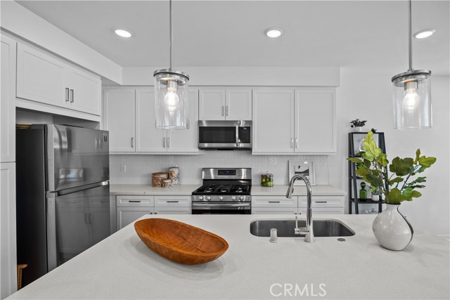 Welcome to The Resort, where modern luxury meets everyday convenience in this stunning 2-bedroom, 2-bathroom condo. As you step inside, you’ll be captivated by the open-concept kitchen and family room adorned with quartz counters and a custom backsplash. This inviting space is perfect for cooking, socializing, or simply relaxing with your favorite shows.rnrnJust off the living area, a cozy balcony awaits, offering the ideal setting for sipping wine and soaking in the beautiful California sunsets. When it’s time to unwind, the master bedroom serves as your personal sanctuary, complete with a walk-in closet and an en-suite bathroom. The second bedroom is equally spacious and versatile, perfect for guests, family, or a home office. Adding to the home’s convenience is an indoor laundry area, making chore days a breeze.rnrnParking is no longer a concern with a roomy 2-car tandem garage, providing ample space for your vehicles and recreational gear. Guest parking is also conveniently located just steps away. The home comes equipped with smart features like a Ring doorbell, keypad entry, and a smart thermostat, allowing you to manage your home’s security and comfort with ease.rnrnBut the amenities extend beyond your front door. The Resort is a pet-friendly community, featuring multiple dog play areas and a dog washing station. Fitness enthusiasts will love the yoga room and state-of-the-art fitness center, eliminating the need for a separate gym membership. The recreation area offers many entertainment activities, including bocce ball and ping pong, while the expansive pool with cabanas provides the perfect weekend escape. A fully-equipped business center caters to your work-from-home needs. Plus, you’re within walking distance to Target, Kohl’s, Ontario Mills, and the Toyota Arena, placing shopping, dining, and entertainment right at your fingertips.rnrnDon’t miss out on this incredible opportunity to experience a fulfilling and active lifestyle. Schedule your tour today!