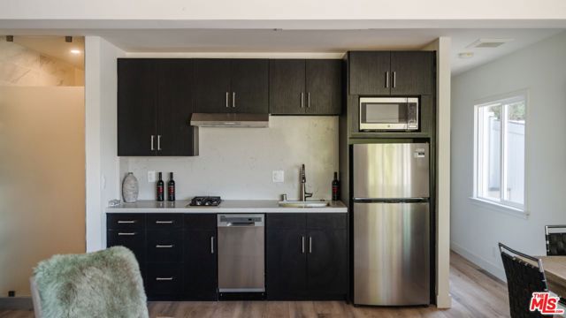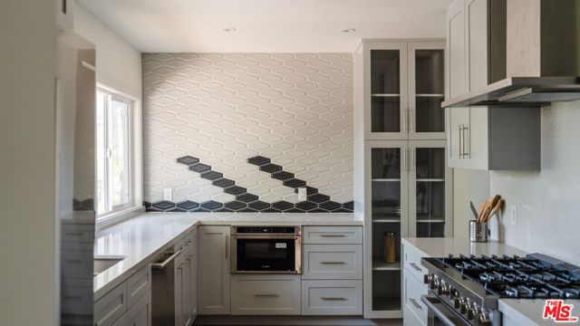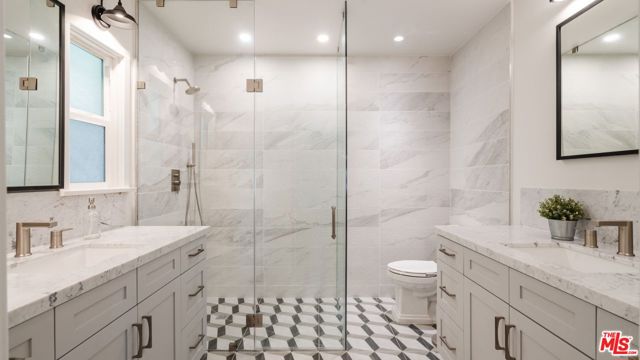 Nestled within the coveted Hollywood Hills, this 3 bed/4 bath residence has been meticulously reimagined from the foundation up, and sits secluded behind private gates on an expansive 11,325 SF lot with 2,300 SF of contemporary living space. A truly distinctive offering with detached ADU, and designed by the esteemed Interior Studio, the property is an unparalleled gem in the neighborhood with easy accessibility to all of Los Angeles.Upon entry, the home boasts soaring vaulted ceilings and intricate glass paneling that overlooks a spacious, multi-tiered backyard with a legendary Oak tree – the perfect backdrop for at home gatherings. Complete with top-of-the-line Bosch appliances, the chef’s caliber kitchen includes sparkling quartz countertops and ample storage. The primary residence showcases two generously sized bedrooms accompanied by 2.5 impeccably appointed baths. The thoughtfully renovated ADU, located above the two-car garage and accessible via a separate entrance, complements the property with an additional bedroom and bath, along with a private patio with beautiful views of the city and mountains. Other notable features include a dedicated home office space with picturesque vistas, new flooring, windows, foundational elements, copper plumbing, roofing, HVAC systems, and a tankless water heater. Within prime proximity to Los Angeles’ best shopping dining and nightlife and among the top rated Elementary and High School districts in the area.
