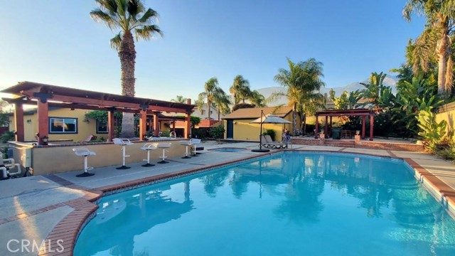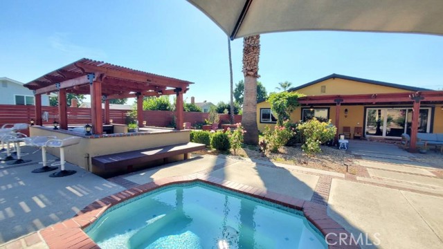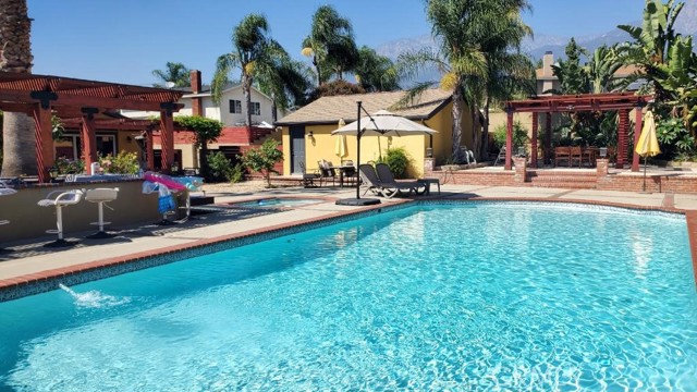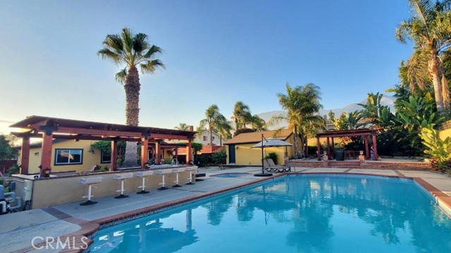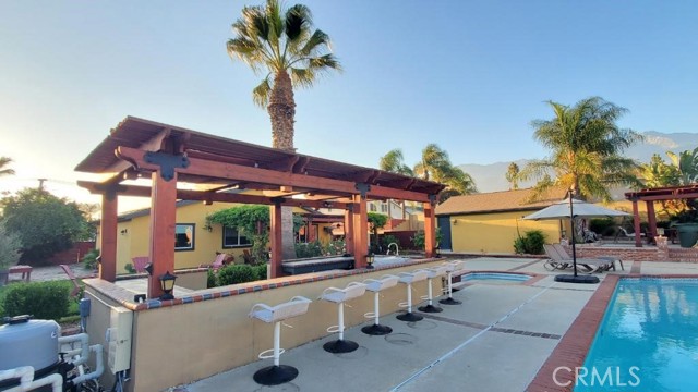 Stunning single story turn-key home that truly is it’s own Private Paradise, no stone was left untouched in turning this house into a home, originally built in 1897, completely remodeled and upgraded beginning 2017-2020. Interior features include: 4 bedrooms, 2 baths, open concept living, smooth plaster walls, beamed ceilings, bamboo flooring, stack stone gas fireplace with rustic wood mantel, large picture windows with custom coverings, chef inspired kitchen, quartz countertops, hammered copper farm sink, copper plumbing, shiplap wall in master bedroom, master bedroom private patio with fountain creating a personal space all your own, separate laundry room with front load washer & dryer, wood countertops and cabinets for storage and so much more you have to see it to believe it. Exterior features include: Smooth plaster walls, front porch, side patio and 2 rear patios, recently re-plastered pool, recently re-plastered spa, outside kitchen area, gas fire pit, new roof on both home and detached garage permitted in 2019, new windows throughout, C. H. I. Cedar Plank garage door, electronically controlled gate at driveway with optional second driveway gate on the south side of the property, security cameras, upgraded 200amp electrical panel, copper pipe plumbing, tankless water heater, 4 ton split system HVAC, lush landscaping, 2 fountains and exterior lighting. Beautiful mountain views from the patio, pool and entertaining areas, come tour this one-of-a-kind masterpiece, that has been exceptionally remodeled from the studs out. The property also includes an 8Kwh Solar System and Tesla charging station. This property has also been updated with new plants that are low maintenance. RV parking or parking for over 20 cars, this truly is a dream home.