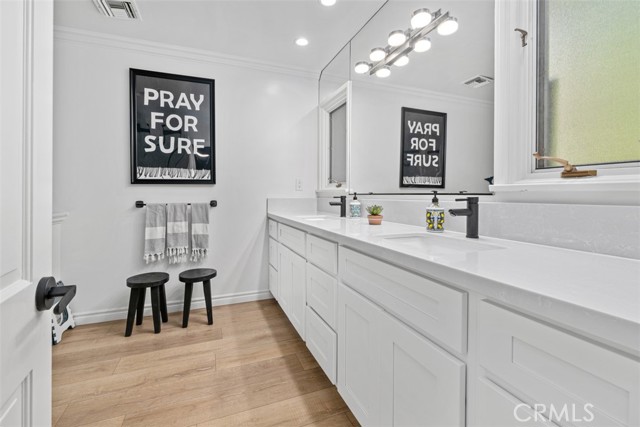 Welcome to the highly desirable and ideal Cliffhaven neighborhood in the Newport Heights community of Newport Beach. This is a one-of-a-kind, 5 bedroom, 4.5 bath single-level home with a pool in the back. The home is ideally located just a few minutes from Pacific Coast Highway, Newport Beach Harbor, as well as a plethora of restaurants and shopping options available on 17th st. Newer features include wood look luxury vinyl plank throughout most of the living spaces and bedrooms and an upgraded hallway bathroom with newer quartz counter tops over white shaker cabinets, and tiled tub wall. The property holds two full master bedrooms both with walk-in closets and walk-in shower (one with a soaking tub), a beautiful living room and family room, with travertine tile floors in the living space. Kitchen comes with a subzero refrigerator, stainless steel microwave and dishwasher, high end Viking range, and a kitchen island with breakfast bar sitting just across. The family room boasts a wet bar complete with wine rack and wine fridge. The bedrooms boast laminate flooring. In the backyard you can enjoy a pool and jacuzzi, and is perfect for entertaining with its large spaces and built-in barbecue. The backyard is gated, giving you and your loved ones plenty of privacy. This property is located on a 12,500 square-foot lot. Gardener and pool maintenance included.