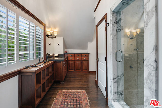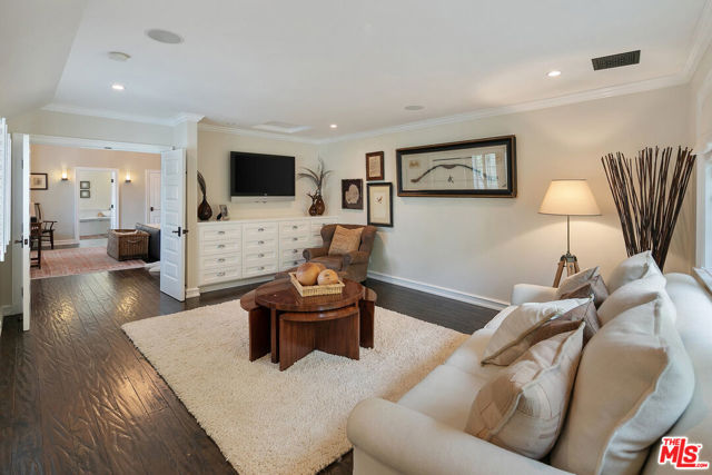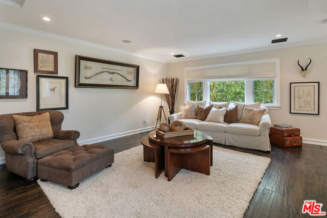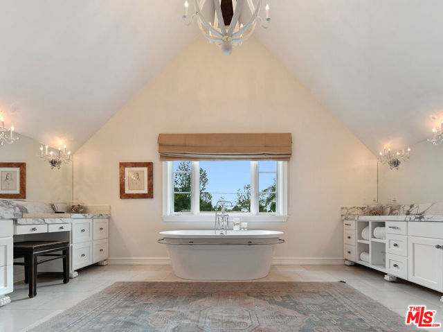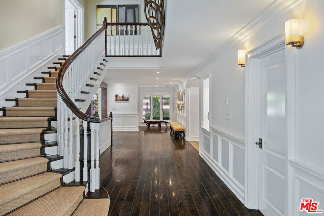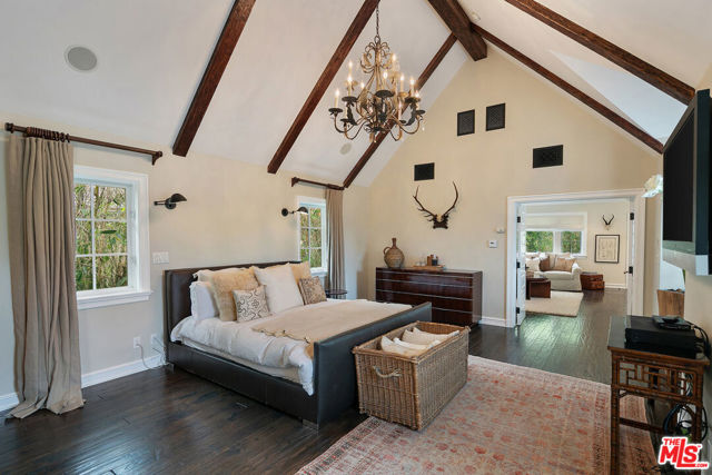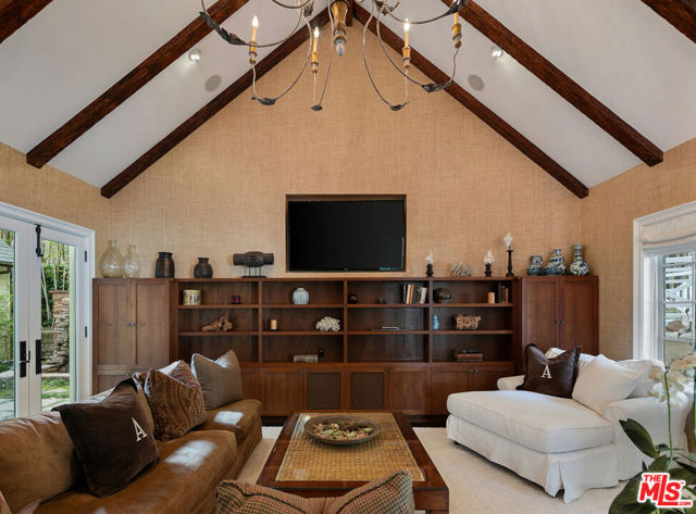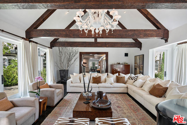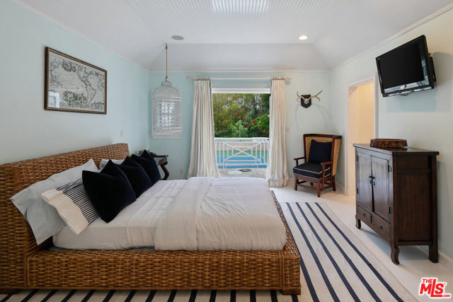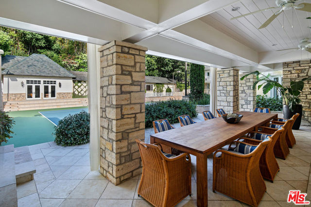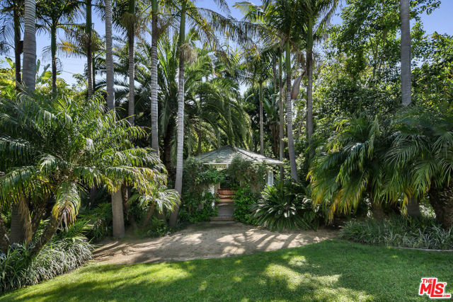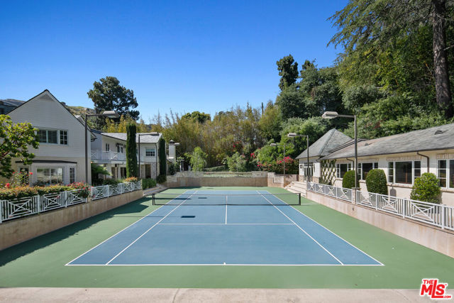Explore an exclusive gated estate originally designed by Paul Williams in 1941 for Bert Lahr, the famed lion in “The Wizard of Oz.” This private haven, owned by luminaries like Betty Grable, Harry James, and Paul McCartney, has been beautifully remodeled to evoke the elegance of a Connecticut/Hamptons residence. With luxurious features, including two master suites, three secondary bedrooms, seven bathrooms, and extensive entertainment amenities like a pool, spa, tennis court, and bowling alley, this extraordinary property offers a coveted lifestyle on over 1.38 acres of land. The main house features two lavish master suites, three secondary bedrooms, two staff quarters, and a total of seven bathrooms. A grand living area with high-vaulted ceilings, a media room with a wet bar and wine cellar, create an ideal setting for entertainment. Outside, enjoy extensive amenities such as terraces, an outdoor kitchen, pool, spa, tennis court, koi pond, sports court, putting green, and a vintage-inspired two-lane bowling alley.A separate guest house with private entrance offers two bedrooms, two and a half bathrooms.