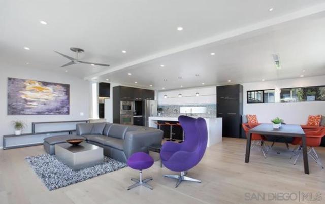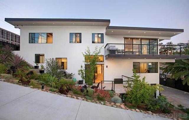 Experience living with the breathtaking panoramic vistas of Point Loma Peninsula, North San Diego Bay, U.S.S. Midway, and the Downtown Skyline from the luxury of this multi-tiered, bespoke, modern residence. Meticulously crafted, this residence boasts distinct Living Areas and versatile Home Office spaces on every level that invite the enchanting night views of the city skyline and waterfront from nearly every room. The house is appointed with high-quality appliances and refined finishes throughout, complemented by a home security system, lighting, and irrigation systems. Standout features include a stylish glass top induction stove, quartz countertops with gracefully cascading edges, and immaculate white lacquered cabinets in the kitchen. Indulge in spa-like bathrooms, enjoy the warmth of radiant heat flooring, and make use of custom-designed walk-in closets. The residence is also equipped with solar, energy-efficient architectural and landscaping elements. Option available to rent furnished for an additional fee. Available December 1.