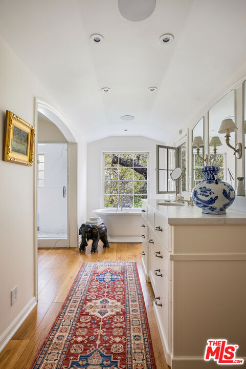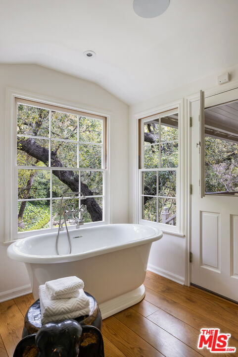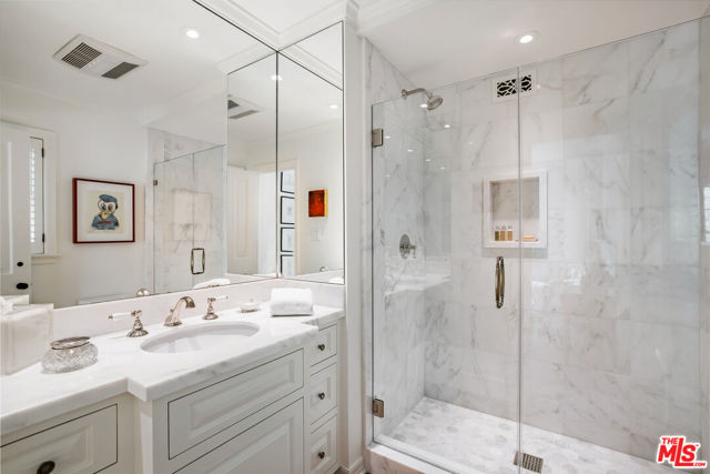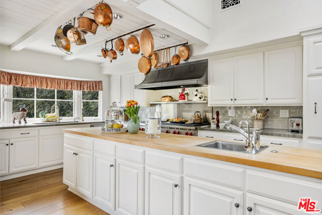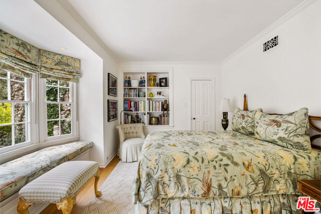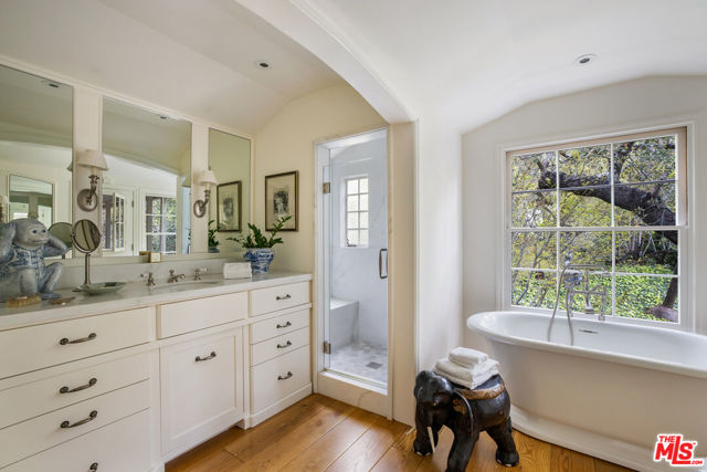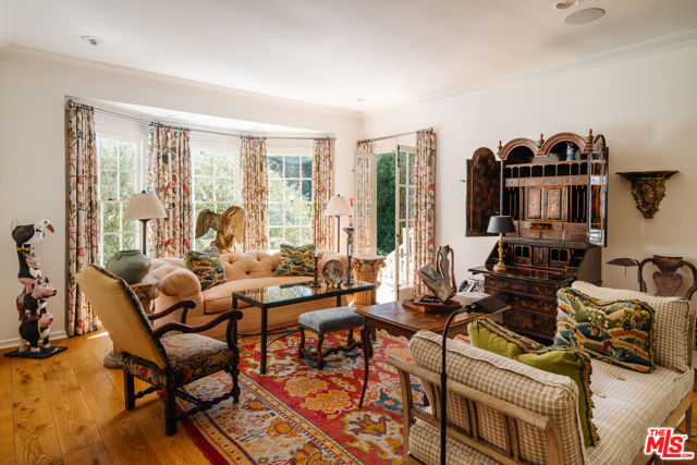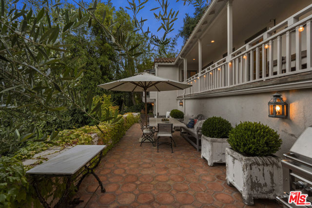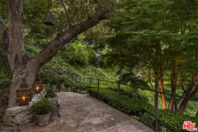 Meticulously renovated over the last two years with interiors by renowned interior designer, John Cottrell. This stunning Monterey Colonial Villa with Hollywood Pedigree originally designed by Arlos R. Sedgley AIA is located in prime lower Bel Air (Just North of the Bel Air Country Club Entrance and West of the Hotel Bel Air). Built for John Farrow and Maureen O’Sullivan in 1937, this extremely private, romantic estate named Greystoke Cottage, is situated on over a half-acre of lush, manicured and rambling grounds landscaped by Tichenor & Thorpe Architects, exquisitely designed for indoor-outdoor living and entertaining. This home exemplifies modern luxury while retaining its classic charm. Flooded with golden light, the formal living room, dining room, sensational open kitchen/great room, library, family room, and Primary Retreat with spa-like bathroom make up the main level. On the lower level, there are 2 additional bedrooms and baths, plus a separate additional bed/bath that makes an excellent office or staff quarters. Standouts include French doors opening to balconies and patios from most rooms, four fireplaces, beautiful hardwood floors throughout the home. Outside you can enjoy the stunning secluded large pool area perfect for entertaining, dining al fresco on the patio, or exploring the magical secret garden trails and parklike grounds. A serene oasis while just minutes from Sunset Blvd, this extraordinary elegant estate will tug at your heartstrings.