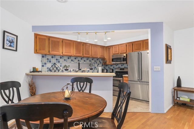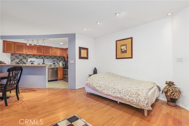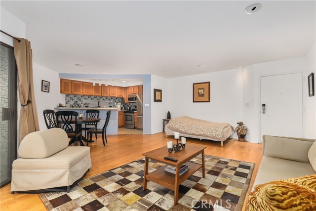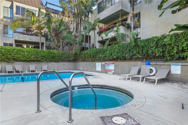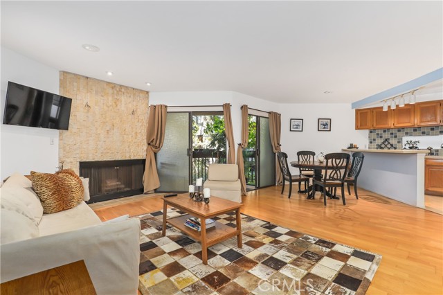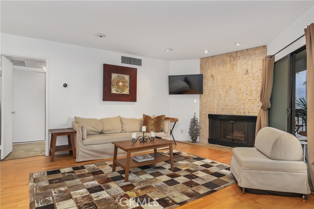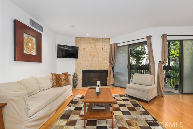 Proud to introduce this inviting corner unit 1-bedroom, 1-bathroom condo in the vibrant heart of West Hollywood. Spanning 793 square feet, this condo boasts a captivating open floor concept and sleek hardwood floors throughout that features a decorative fireplace with modern stone finishes. A major HIGHLIGHT of this home is the expansive balcony featuring a nice view of nature, accessible from three sliding doors (one in the bedroom, one in the living room & one in the dining room), offering seamless indoor-outdoor living and the perfect relaxation setting. The kitchen showcases modern stainless steel appliances, quartz countertops, and a stylish tile backsplash, providing both functionality and aesthetic appeal. The bathroom features a glass-enclosed standalone shower, adding a touch of luxury to your daily routine. The spacious bedroom includes dual quartz sinks, enhancing your morning routine with convenience and style. There is an opportunity to install in unit laundry potentially (please verify with the HOA). Unit has central air and cooling. Additionally, this residence is part of an HOA that covers gas, water, earthquake insurance, on-site management, maintenance and a host of amenities (one parking spot, heated pool and spa, fitness center and club room). Located near Gelson’s Market, Kings Road Park, and an array of quality restaurants, shopping options, and entertainment. This condo offers the ideal blend of comfort, style, and convenience in the heart of West Hollywood. Don’t miss the opportunity to make this delightful condo your new home.