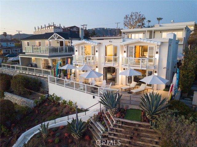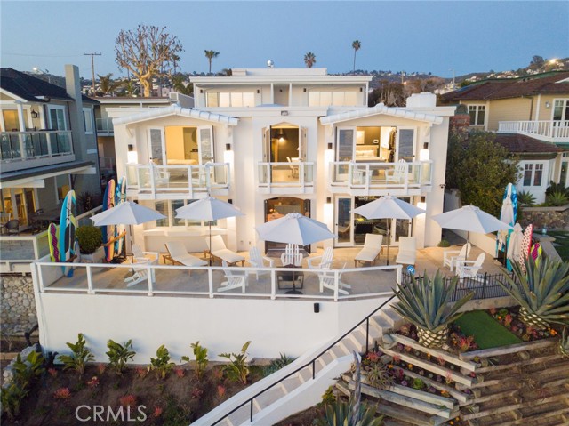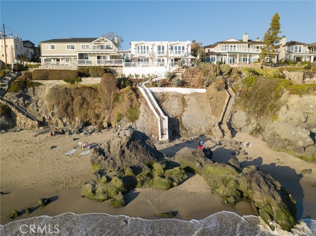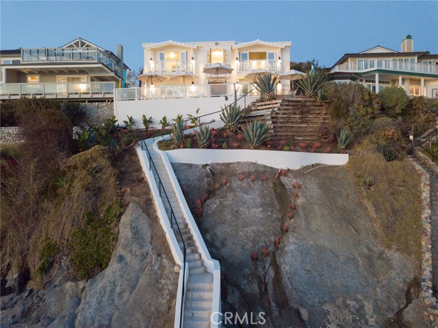 Incredibly rare on the shores of Laguna Beach, this oceanfront four-residence multi-family property presentsrnan outstanding opportunity to enjoy it as it is, create a private compound, or take advantage of its incomernand investment possibilities. Located on a blufftop in Laguna Village’s famous HIP District, complete with arnprivate staircase leading to the gorgeous beach and cove below, the oceanfront site reveals a detachedrnmain residence with four bedrooms, a den and two-and one-half baths, and a trio of two-bedroom, two-bathrnapartments. Nearly every room on the property welcomes breathtaking panoramic ocean and sunset viewsrnthat are without compare. Anchored by a large wraparound ocean-view terrace, the main home offers arnmodern aesthetic that is reinforced with an open design, dramatic colors, sleek finishes, top-tier fixtures, anrnisland kitchen, and a luxurious on-trend ocean-view primary suite with view balcony. Each apartment isrnappointed with upscale refinements that include chef-inspired kitchens, granite countertops, skylights andrnocean-view balconies. All four residences share access to a private pool and a bonus room that can be arnpool house, office, gym, studio or media and game room. Just north of the opulent Surf & Sand Resort, thisrnexceptional property is located in the heart of Laguna Beach’s HIP District, which is home to beautifulrnbeaches, art galleries, countless shops and boutiques, and popular restaurants. Make today the day yourrndreams of owning an ultra-rare oceanfront property in Laguna Beach come true.