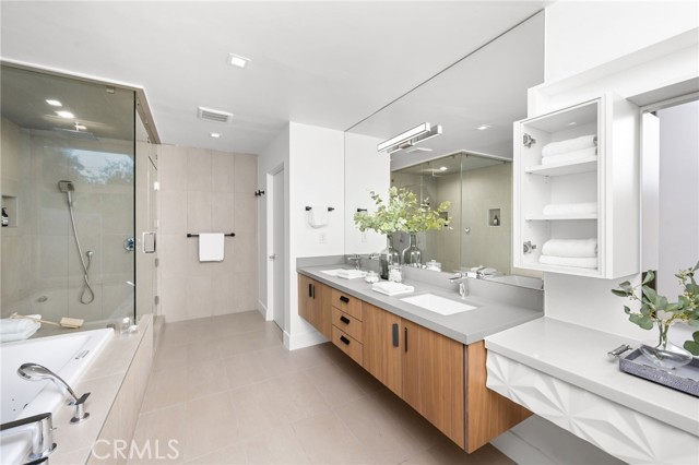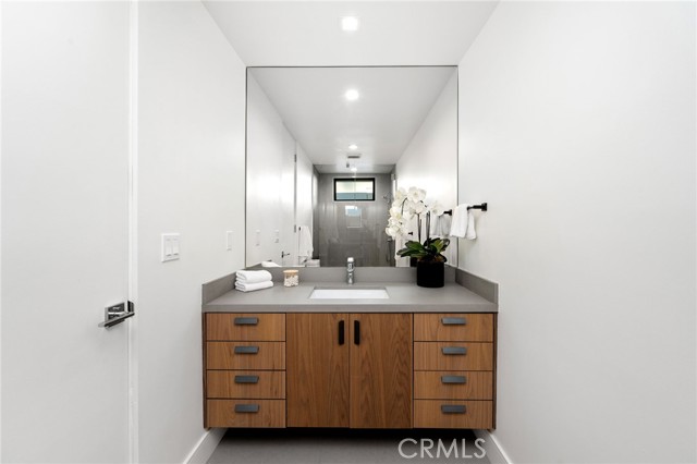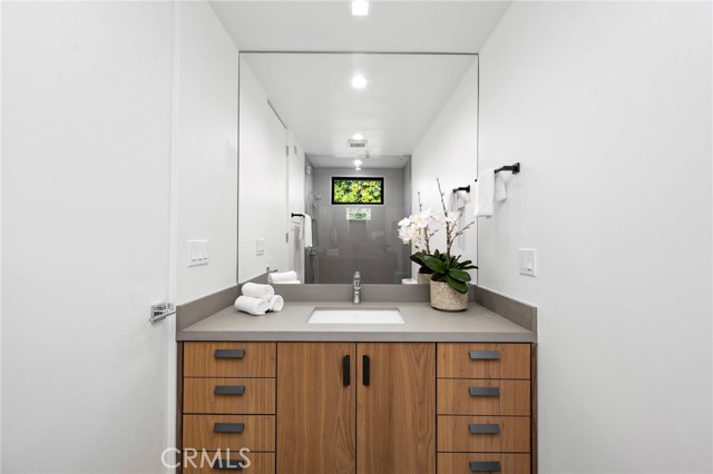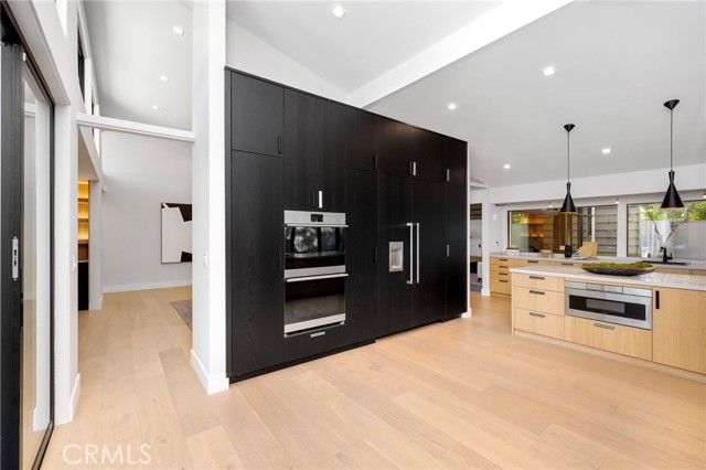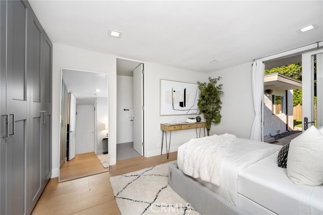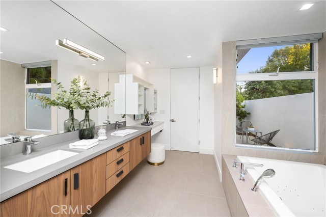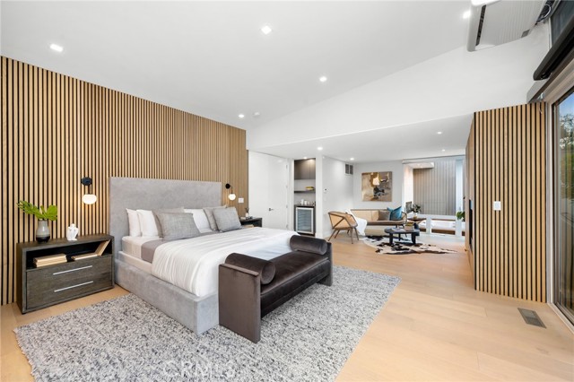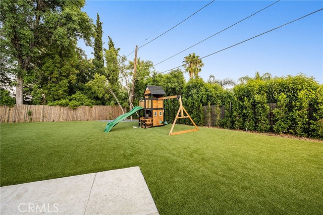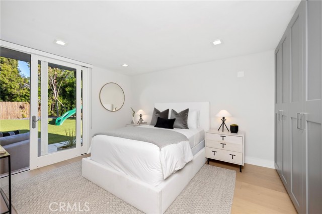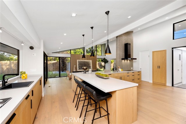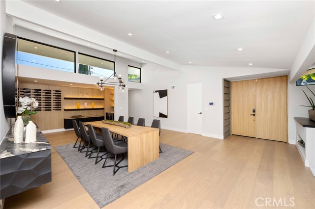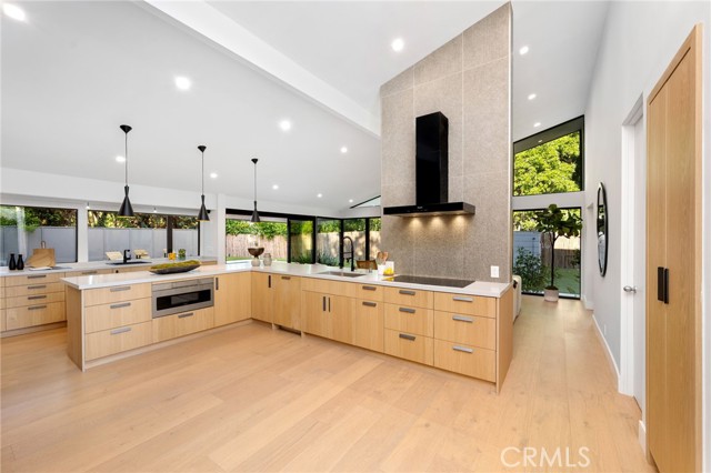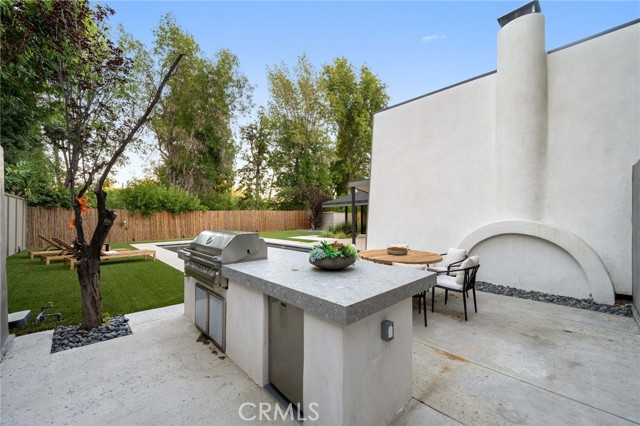 Stunning mid-century modern home in a prominent enclave of Tarzana. Inviting curb appeal with gated entrance welcomes guests through an covered entrance to open floor plan with beautiful finishes throughout. Meticulously remodeled, the property has spacious common areas with pitched ceilings, geometric windows and wood and tile floors. A large living room showcases a stunning fireplace and floor-to-ceiling glass doors and windows that open to an entertainer’s backyard. A Gourmet Chef’s kitchen comes with beautiful stone counters, stainless steel appliances, and a large breakfast bar adjacent to the spacious family room and dedicated office. The exquisite primary features access to a private exterior jacuzzi, walk-in closet, and spa-like master bath with soaking tub, open glass shower, and dual vanity. A state of the art movie theater and guest rooms complete the main sleeping quarters perfect for family and friends. A private entertainer’s yard has a sparkling pool and covered wood patio perfect for entertaining. The backyard also features tremendous amounts of side yards with extra entertainment areas, an exterior en-suite casita and detached pool house. Enjoy everything Tarzana has to offer, located near shops, restaurants, and more!