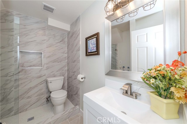 Gated private community situated in prime City location! Gorgeous home located in the private end of the community with the backyard leading to a large garden perfect for outdoor entertaining and relaxing. The property features brand new flooring, windows, doors, fixtures, appliances, etc. Beautiful design and light fixtures throughout the gorgeous home. The brand new kitchen is bright and spacious with plenty of cabinetry, pantry, and dining area facing cozy private backyard. The sliding door leads to the private backyard perfect for weekend brunch and candlelight dinners. Huge living room with large window that brings in plenty of natural lighting. Bathroom with shower and laundry area on the main level. The second level features a brand new bathroom with dual vanities and two large bedrooms equipped with closets, one of which features separate His & Her’s closets. Gorgeous two-level home with plenty of windows throughout that brings in plenty of sunshine. Two parking spaces inside the gated community. Subject property is located close to a variety of restaurants, shopping centers that include Target and Home Goods, national grocery stores, banks, Costco, and so much more. Easy 210 and 605 freeway access. This is the perfect turn-key property that is located in a quiet community yet centrally located in the heart of Los Angeles.