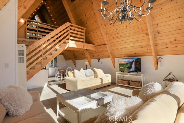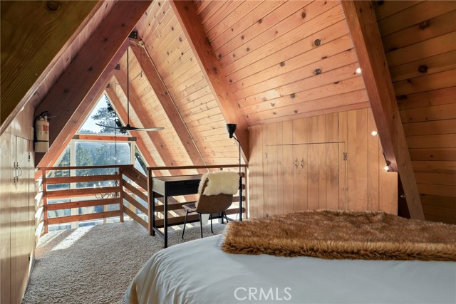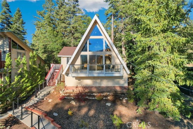 Welcome to your dream mountain retreat! This highly sought-after, Instagramable A-Frame cabin is only 3 minutes from skiing and golf at Bear Mountain, but with breathtaking two-story mountain views, a wood-burning fireplace and a tranquil, wooded back deck, you may never want to leave. Nestled in the most coveted part of Moonridge, this ultra-prime location is walking distance to the zoo, scenic hiking trails, and the ever-expanding Moonridge corridor. It’s just 7 minutes to the excitement of Big Bear Village and Big Bear Lake. This is what everyone wants in a mountain home – an authentic mountain experience that’s minutes away from local attractions. You’ll appreciate the portable AC in the loft bedroom, the office area with beautiful views, the stackable washer/dryer and the fire pit on the back deck. With 1066 sq ft, this property offers room for everyone. The loft can accommodate a king-size bed, the lower level has a queen and full sleeper sofa. The ample parking pad has room for up to three cars. This turn-key property comes furnished and is short term rental approved. But there’s one more thing… approved permits for a 2 bedroom, 2 bath floorplan! This one checks all the boxes, come see for yourself!