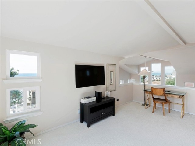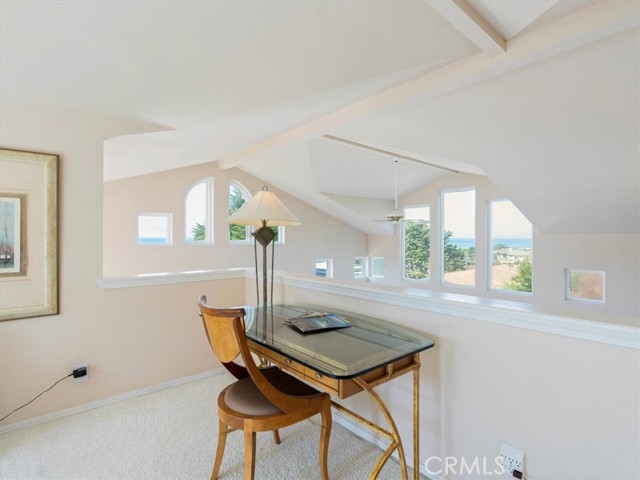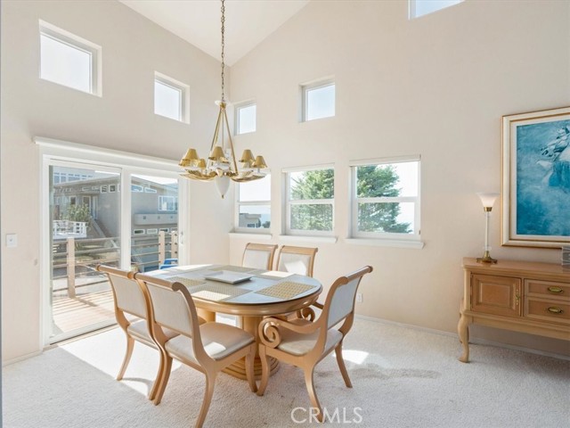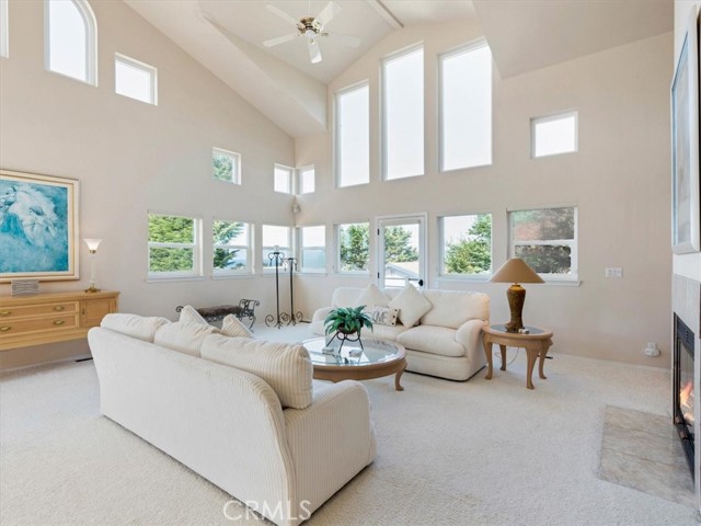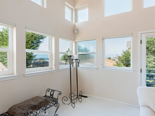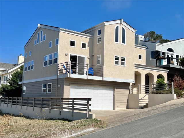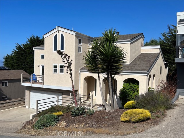 This sophisticated beach home is a close distance to the sea, the village, the open space ranch trails of Fiscalini Ranch and to Shamel Park. It is a quality package of views and location for a Cambria home. The soaring, two story ceilings of the main living areas bring in ocean views and sunshine, while the ample room sizes create a comfortable space to go about your day-to-day living. At the front corner of the home, the dining area looks down toward the sea and provides the access to the front ocean view deck. The ocean view living room has a gas log fireplace and a deck that has ocean views and also overlooks the backyard. A white kitchen complements the sophisticated style of the home. It has an ocean view, solid surface counters, tile floors, a microwave/convection oven combination, a second oven and separate cooktop. There is also a breakfast bar. The primary suite conveniently lies on the same level as the main living areas. It has a fireplace, a shared deck with the living room, two closets, two sinks in the bathroom and a separate shower and tub. There are two additional bedrooms, a full bathroom and a large laundry room with storage on the first level. Both of these bedrooms access the backyard. At the top of the home is an ocean view den/loft. There’s plenty of room for an office or additional sleeping area up here. Other amenities include an oversized two car garage and clerestory windows. This home is currently a Monthly Vacation Rental and includes the furniture and furnishings for a turn-key operation. The square footage in the Multiple Listing Services is higher then the figure from the San Luis Obispo County assessor. Buyer to verify actual square footage by measuring the home.