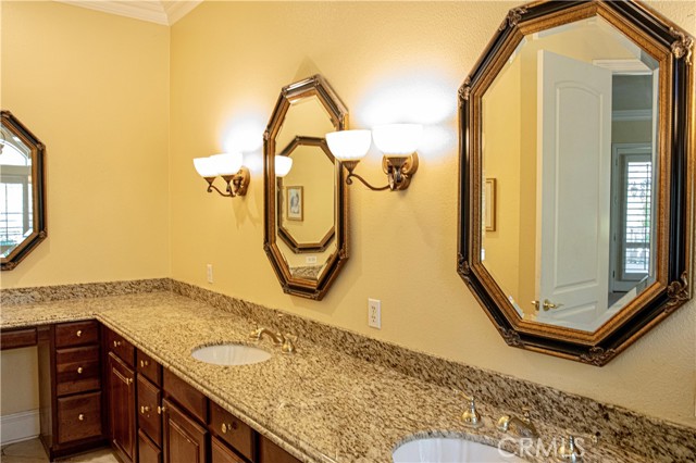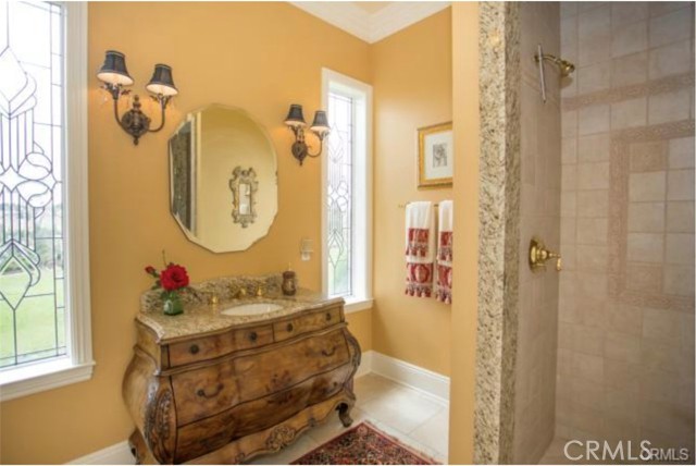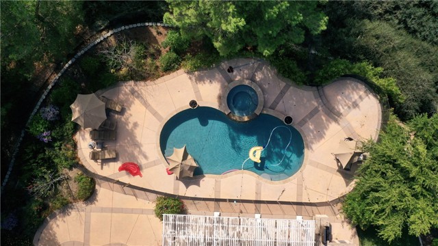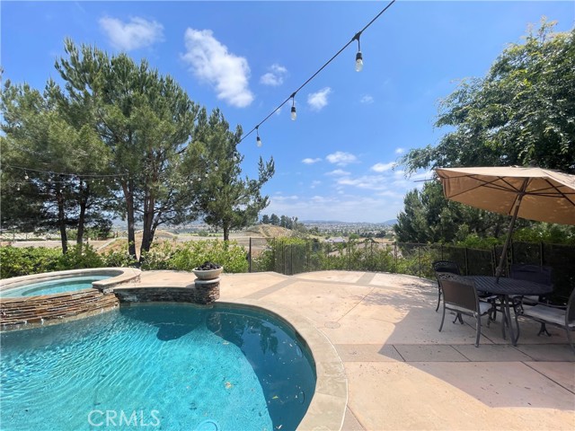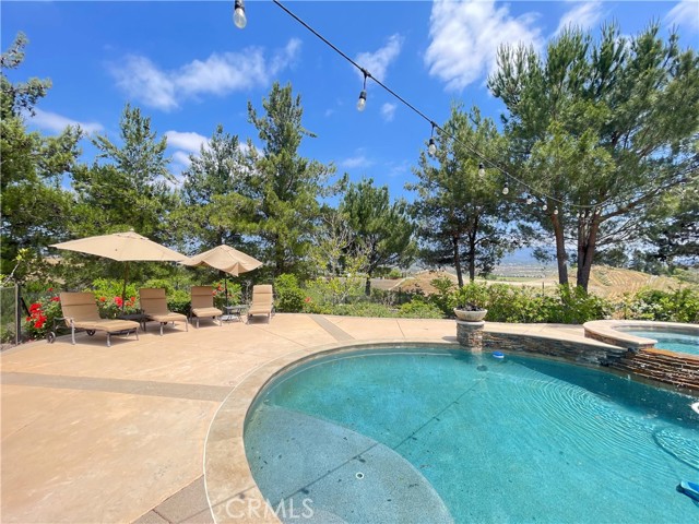 This estate home is located on a quiet street in the Country Roads Estates neighborhood and is set on 5 acres of property with beautiful mountain and city views. Situated on a private hill up a long driveway behind a private gate, the main home is 3838 sf. one-story main home has 4 bedrooms, including two primary en-suites, and 3rd bedroom has French doors to the outside. a large bonus room with 2 entrances, one with French doors, that can be used as a 4th bedroom, office, 3 full baths, and a spacious 3-car garage. The open floor plan has 4 sliding doors opening to the views, covered and uncovered patios, and the ideal outdoor living area. The large kitchen and great room have an island with seating for 4, custom European cabinets, a 48-bottle wine fridge, fireplace, and the entire home has 10-foot ceilings and solid 8-foot doors. Plus Solar option with NEM 1 rates! There are 2 separate approx. 750 sf guest homes. One of the guest homes is an upstairs studio w/full bath, kitchen, and walk-in closet, encased by numerous windows offering plenty of natural light. The 2nd guest home is a 1-bedroom, 1 full bath, full kitchen, and a laundry room, with wood floors, custom cabinets, and new carpet. Both guest homes have their own private entrance and are ideal for rental units, in-law setups, guests, or a complete 2nd residence. This estate has a large 2-car wide paved asphalt driveway leading up to the home which is beyond the view from the street. The elegant backyard has a gorgeous pebble bottom pool & spa, a built-in gas BBQ with refrigerator, and counter seating overlooking the pool and golf area, a professionally designed 5-hole putting green with chipping pad, and a large turfed area for outdoor activities. On the opposite side of the home is a large, fenced dog run with two gates. Nearly all 5 acres of this property have been carefully landscaped with automatic sprinklers, including numerous trees, and fruit trees. Within a very short walk are a park and entrance to hills and lots of open space for walks and exercise along with parks with kid’s playgrounds and basketball courts, and Crown Hill Elementary School. Close to many of Temecula’s wineries on both Rancho California and the De Portola Wine Trail. Plus, only a 5-minute drive to grocery, restaurants, Starbucks, and more. Country Road Estates has low property tax rates and HOA dues. -Country living in the city!