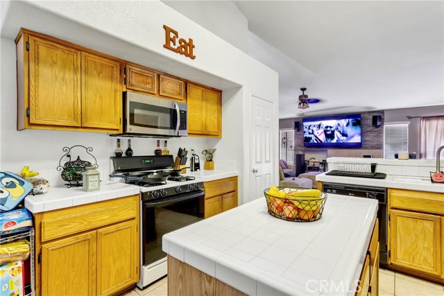 : Kitchen Island, Kitchen Open To Family Room, Tile Counters