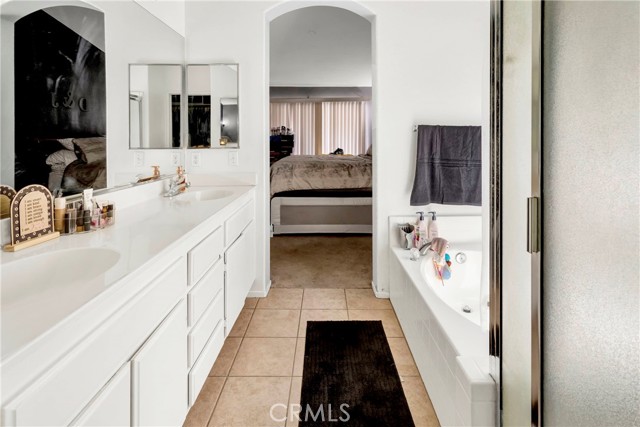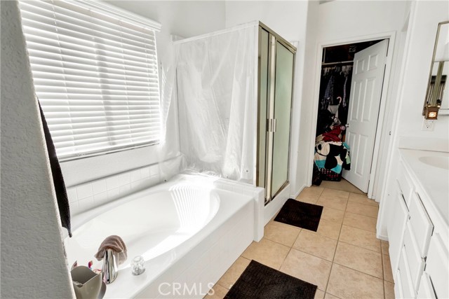 : Shower, Bathtub, Walk-in Shower, Shower In Tub, Tile Counters, Double Sinks In Primary Bath