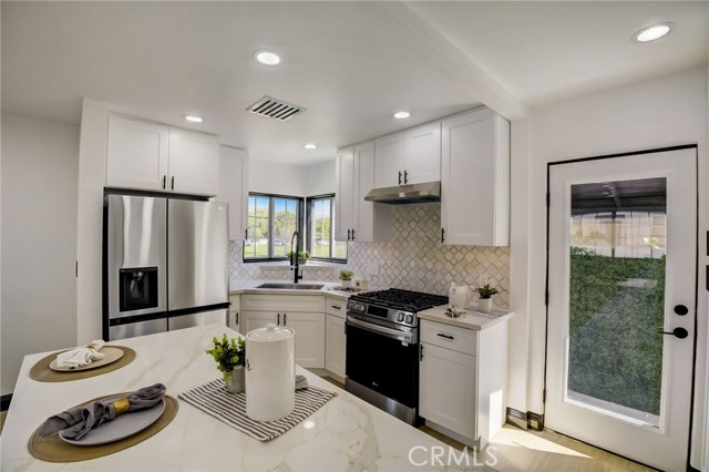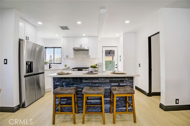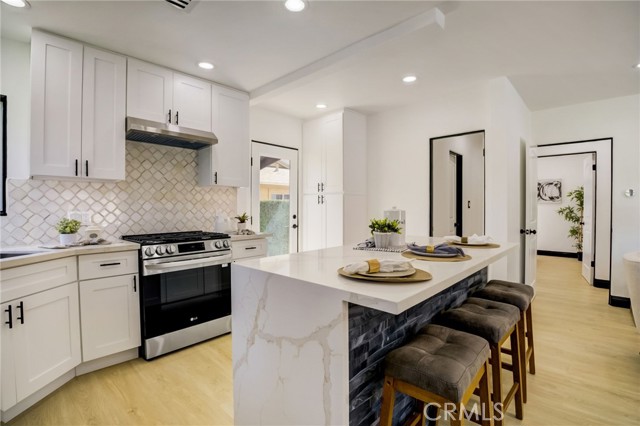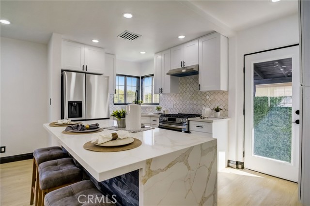 This stunning home has undergone a complete transformation, boasting fresh interior and exterior paint that gives it a modern and welcoming look. Step inside to discover elegant laminate flooring that flows seamlessly throughout the space, complemented by recessed lighting that creates a warm and inviting atmosphere. The kitchen has been fully remodeled, featuring top-of-the-line appliances and stylish fixtures, making it a chef’s dream. Additionally, the property offers an accessory dwelling unit (ADU) in the spacious backyard, providing versatility and extra space for various purposes. A separate garage adds convenience and ample storage. The landscaping has been meticulously designed, showcasing lush, newly laid turf that enhances the outdoor aesthetics, creating a serene and vibrant living environment. This home is truly a masterpiece of contemporary design and functionality.