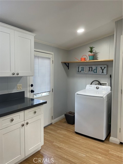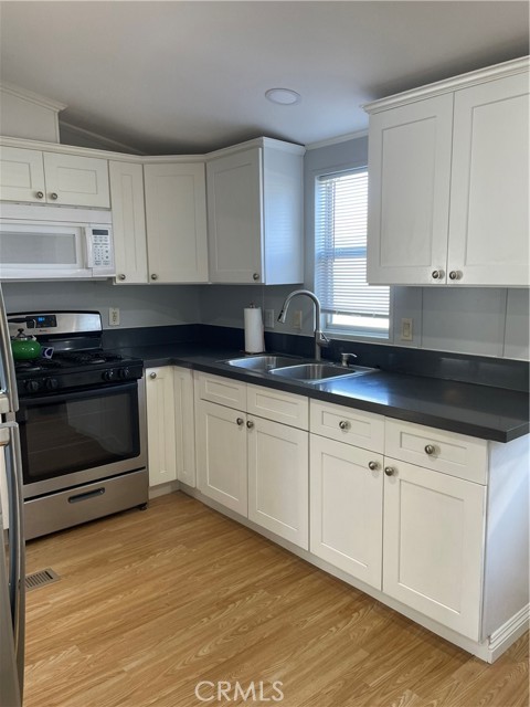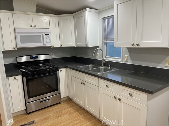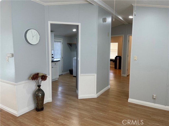 Welcome to this beautiful, move -in condition home at Magnolia Ridge Park, Spc#27. This home features 3 bedrooms and 2 bath with a bright and open floor plan. The whole interior and exterior of the home have been fully painted. New laminate floors installed all over. New ceiling fan with light in living room, new hanging light in dining room and new recessed lighting all over. Master bedroom suite has good size closet space with 2 doors. Newer bathroom vanities, new floor tiles and lighting fixtures in both bathrooms. Window air conditioner in master bedroom, living room area and a portable AC in the 2nd room. New hinges and door knobs on all doors. Good size kitchen with beautiful cabinets, lots of storage space, Corian counter top, lazy Susan cabinet and a pull-out cabinet for condiments/spices. There is a metal shed at the side of the house to store your large items. Carport can accommodate 2 vehicles. There is a large awning in the carport that can be pulled back and forth for extra shade, privacy or other purposes. The Park has a community pool and is conveniently located close to schools and shopping. Easy access to 91 and 5 freeways, near park & ride facility. About 10-15 min. ride to Disneyland and Knotts Berry Farm. The Park is an all-ages community, it is well maintained and has pride of ownership.
