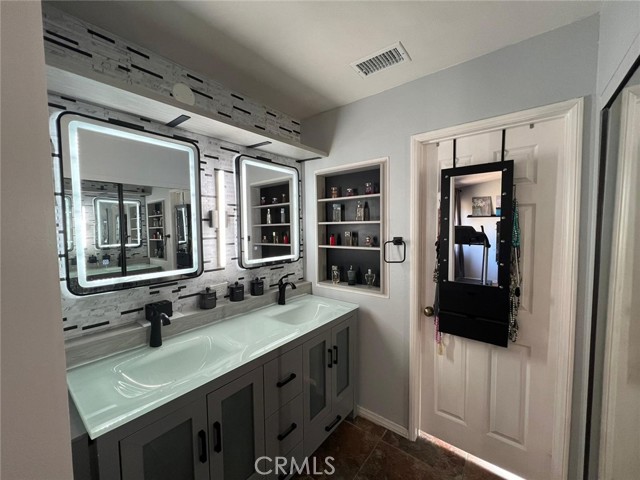 This well-loved and cared for house pushes all of the buttons. Beautiful 4 Bedrooms, 3 bathrooms home at the Country Club in West Palmdale close to the AVMall. Brand new 5 ton AC/heater and ductwork. The house has a spacious living room with a fire place, a family/media room for entertainment, kitchen with granite counters, modern black stainless steel appliances and plenty of cabinets. Many amenities added by owner like electric car charger, privacy modern street fence with a motorized gate, bathrooms with new sinks and mirrors with built in lights, new efficient 0.8 gallon toilets, LED light fixtures and ceiling fans, overhead storage in garage, built-in closet and walk-in master closet, new grass in the backyard, smart exterior LED lights and smart thermostat, smart garage door opener. It also has hidden cable management for TV's and surveillance cameras with local recording. Great fenced in parking for an RV, Boat or up to 8 vehicles Great location near schools, shopping centers and super easy access, just a block from the 14 freeway. Easy convert one side of the house to an ADU for additional income or a loved one and still keep a great independent layout for the main house, plumbing connections in place for a 2nd kitchen. Hurry, hurry interest in this house has been strong.