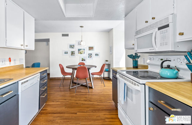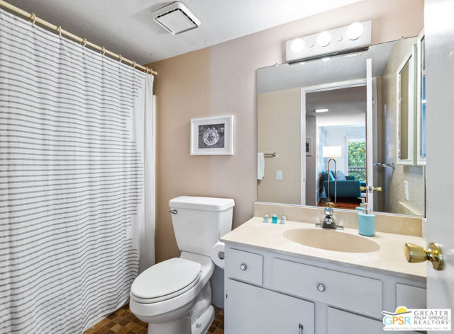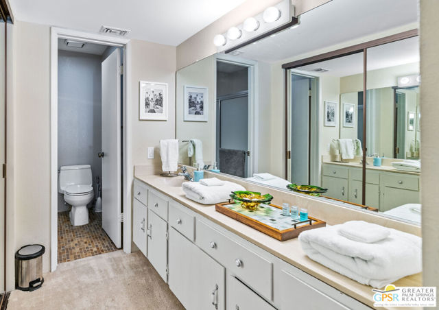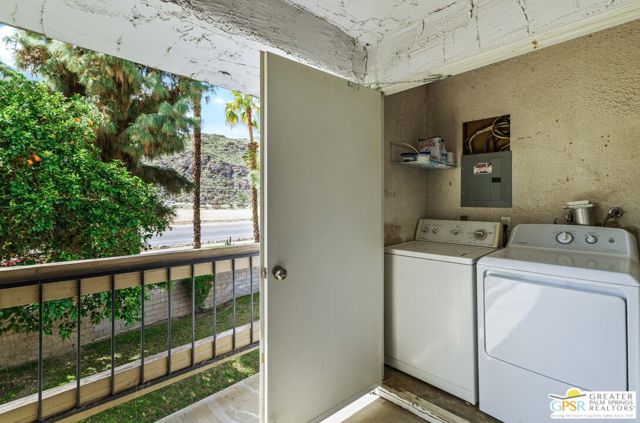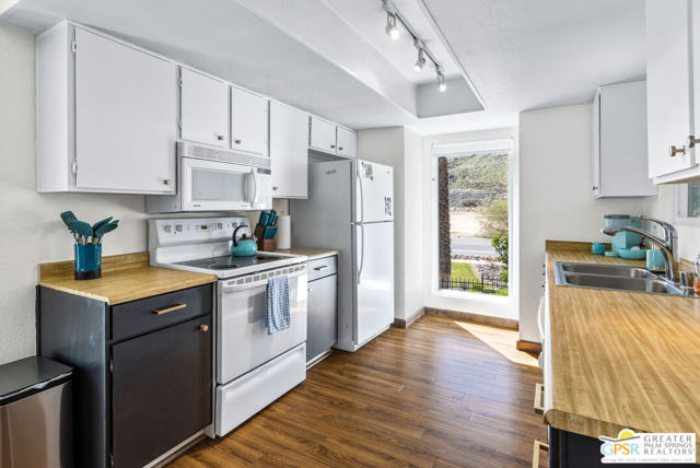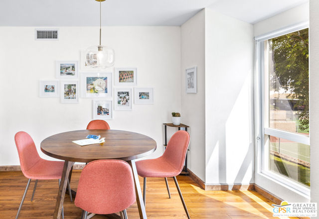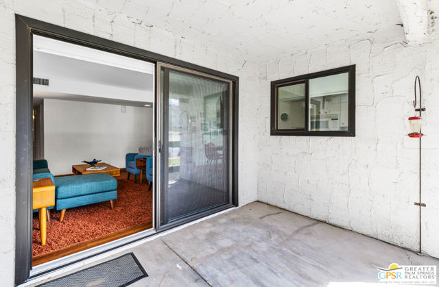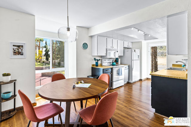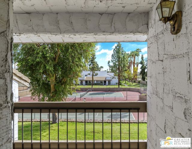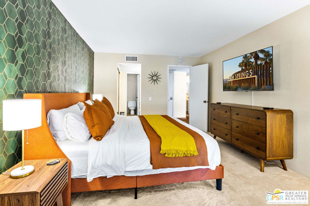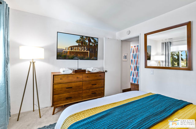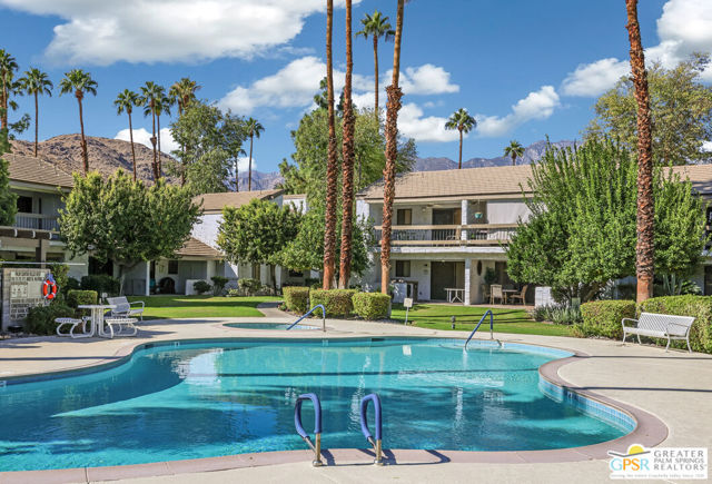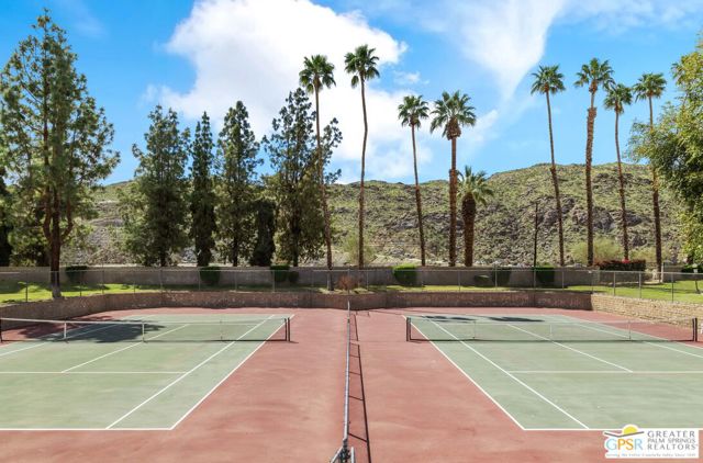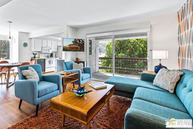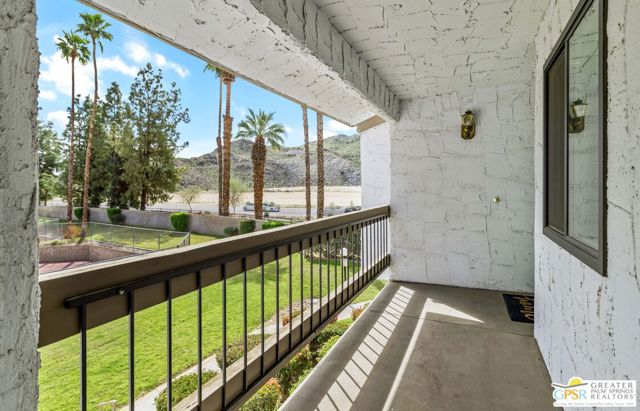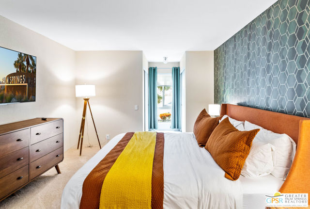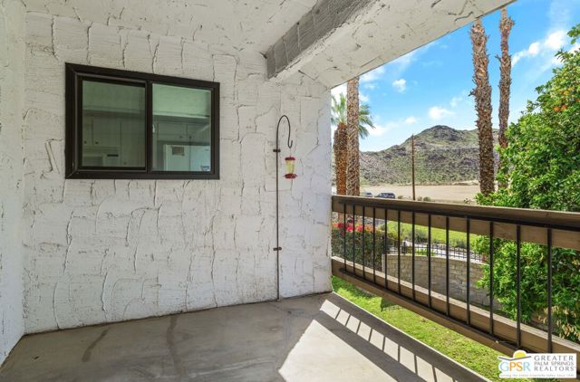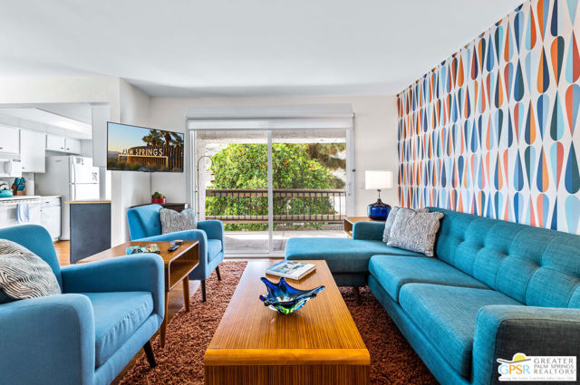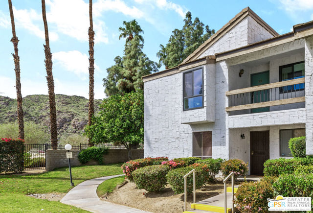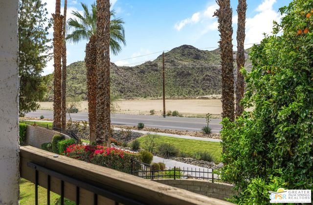 Looking for that perfect Palm Springs hideaway or short term vacation rental? This is it! This 2 bed + 2 bath Palm Canyon Villas condo is located upstairs and at the end of the building allowing for lots of natural sunlight, peaceful privacy and amazing views. Recent upgrades include new double paned, sound dampening windows, fresh wallpaper, and smart home features including controlling access and temperature with a cell phone app. The community grounds include 4 pools, tennis courts and plenty of green space. Current HOA require a low nightly rental minimum of 5 nights, a rare find among Palm Springs living within an HOA where monthly minimum restrictions are common. Additionally, all furnishings are available to purchase outside of escrow. Located on Fee Simple Land (no land lease), this adorable unit is close to all of the excitement of Palm Springs!