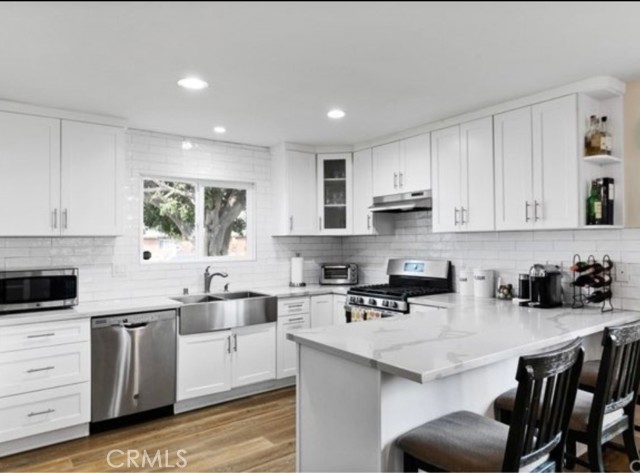 It’s not very often a house of this caliber comes on the rental market! Situated on a quiet, cul-de-sac, this gorgeous single story residence is highly updated and has plenty of space for the whole family. This home features luxury vinyl plank flooring throughout the home (no carpet), quartz counter tops in the kitchen and bathrooms, soft close kitchen cabinets and an open floorplan. Upon entering the home you will notice the abundance of natural light and a bright open concept floorplan. With a double sided fire place that separates the living room from the dining room it adds ambiance to the space, rarely found in a rental property. The kitchen over looks the living room, dining room and the family room. The family room has a double door entry that when shut provides a perfect space to binge watch your favorite shows and not disturb the rest of the family. There are 3 ample size bedrooms, 2 renovated bathrooms and lots of storage in the hallway. The backyard is the ideal setting for al fresco dining with covered patio and lush grass area. Two car attached garage with laundry hook-ups and plenty of room for storage round out this fantastic home. Steps to nearby shopping and in close proximity to the 55, 5, 22, 91.