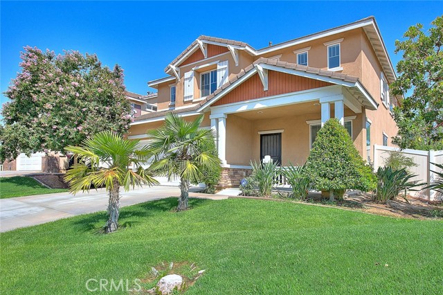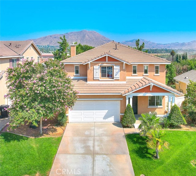Experience luxury living in this executive home in the rarely available and coveted La Loma Hills community. Situated closely to the foothills this property boasts 5 bedrooms, a loft and 3 1/2 bathrooms with an interior square footage of 2584 (per tax assessor records). High ceilings greet you as you enter the home. The open floor plan seamlessly connects the formal living and dining areas. A spacious family room enjoys a cozy fireplace and large media niche for entertaining components. Family room, breakfast nook and kitchen are flooded with natural light, a very welcoming and comfortable area to gather. The kitchen shows light and bright with white cabinetry and dramatic black granite counters. Helpful kitchen island provides bar top dining as well as a functional place to prepare and serve food. The walk in pantry provides wonderful additional space for food and appliance storage. Desirable downstairs bedroom and bathroom add convenience for guests or in-laws. Upstairs, a generous loft is the perfect spot for a game room, home office or den. The primary suite is well sized and features city and mountain views from the private balcony. The primary also has walk-in closets, a large separate soaking tub, walk in shower and dual separated vanities. There is a convenient indoor laundry room. A two-car garage with fire sprinkler system enhances practicality. The backyard is very private with block wall fencing in the back and vinyl fencing on the sides. A sizable concrete patio is partially covered by the balcony to create a shady area to enjoy the outdoors, plenty of mature fruit trees and rose bushes are another nice feature of the backyard. Easy access to major freeways and local amenities.