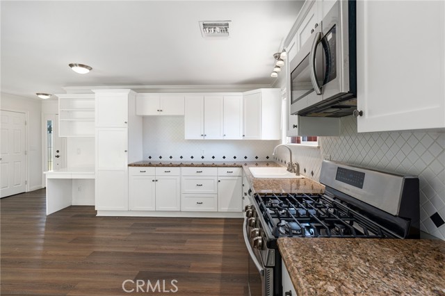 BEAUTIFUL EXPANDED & UPDATED SUNKIST WITH 2 FULL BATHS. EXTRA LARGE PRIMARY BEDROOM WITH 2 CLOSETS, WALK-IN AND SLIDING MIRROR DOORS. UPDATED KITCHEN FEATURING NEWER WHITE CABINETS. GRANITE COUNTERS, FULL DECORATIVE BACKSPLASH, PULL OUT PANTRY SHELVES. WATERPROOF VINYL PLANK FLOORING THOUGH OUT. REMODELED BATHROOMS, NEWER DUAL PANED VINYL WINDOWS. BEAUTIFULLY LANDSCAPED FLOWERING DROUGHT RESISTANT FRONT YARD. REAR YARD FEATURES, COVERED PATIO, LUSH GRASS, FRUIT TREES, VEGETABLE GARDEN AND MATURE TREES. NEARBY TO EL CAMINO CHARTER ELEMENTARY, MIDDLE AND HIGH SCHOOLS. CENTRALLY LOCATED WITH EASY ACCESS TO BEACHES APPROX 14 MILES AWAY! AHMENSON RANCH HIKING & BIKING TRAILS WITHIN A 1/4 MILE. SHOP AT THE CALABASAS COMMONS, THE VILLAGE AND VISIT THE UPCOMING RAMS TRAINING CENTER. THIS IS NOT A FLIP…THIS HOME WAS UPDATED FOR THE SELLERS.