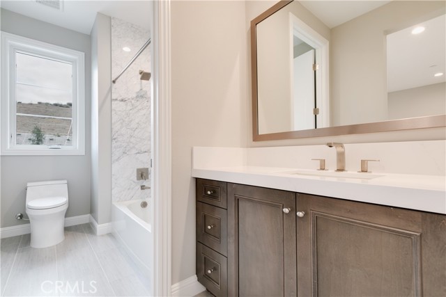 Brand new beautiful two story home located in the Skyline guard gated community by Toll brothers. The property is located on the top of the hill with no house in the front which is more quiet and less noisy, a huge backyard, one of the largest lots in the community, where you can relax and enjoy the amazing view of the city and mountain. Owner spent more than $300000 on the upgrades inorder to match the looks of the model home as much as possible. Smart home systems will be installed, you can control AC and music on their phone and do many more! speakers throughout the house, upgraded lighting system with additional lights throughout the house, build-in camera at the front and backyard. Enter the living room immediately notice the open layout, high ceilings, large windows, beautiful tile flooring throughout the first floor, in the kitchen you will find upgraded stone countertop and a huge island, upgraded back-splash tile, same kitchen cabinet like the model, wolf microwave, oven and stove, build-in coffee maker, and a sub-zero refrigerator for more storage. upgraded cabinet handle and sink faucets, downstair room with upgraded bathroom and flooring, Also the upgraded wood flooring started from the wide stairs and all through the second floor. Upstairs you will find a large living space for kids, you can also separate them into sections like the model homes, also a large laundry room and three other rooms with bathroom and great views. A huge master bedroom with extended space you can make it a small office or living room, amazing views when you look through the window, a huge bathroom with a bathtub where you can also enjoy the view, a shower with upgraded tiles and shower controller, a huge room size walk-in closet for more spaces. A two car and a one single car garage with epoxy finished flooring, clea and solar system ready for electrical cars. Also the landscape will be done nicely by the landlord with two side gates. The home is also close to the Porter Ranch shopping center, many restaurants, AMC movie theater, fwy, and the award winning k-8 school and the top private school Sierra Canyon high school just few minutes away, come take a tour today.