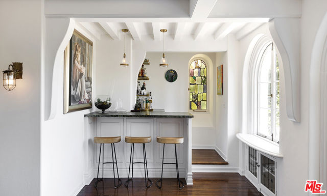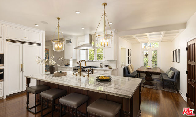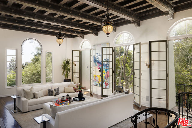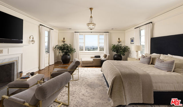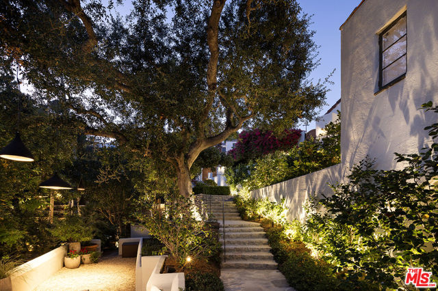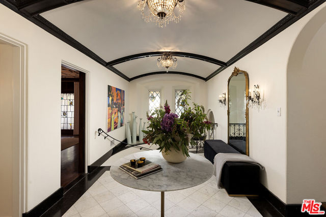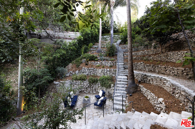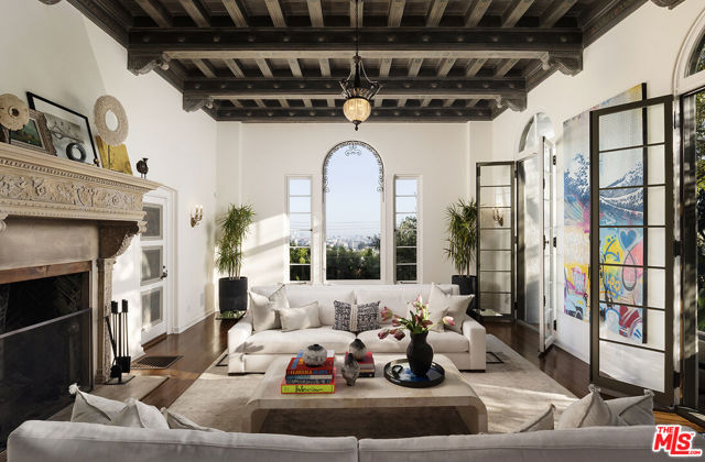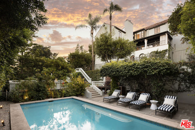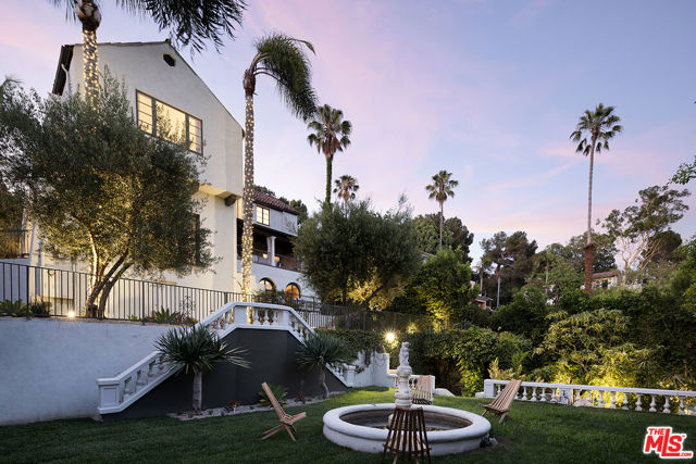 Resplendent period 1924 Spanish Colonial on one of Los Feliz’ most coveted streets. Commissioned by entrepreneur William C. Hay and completed by architect Charles H. Kyson this Architectural Digest published home truly embodies Hollywood’s golden-era. Sited hillside, the multi-tiered property takes full advantage of panoramic city views while providing complete privacy at street level. Meticulously renovated and maintained Bonvue features a double-height grand living room, with coffered, hand painted ceilings, towering French doors, step-down den and wet-bar, all accessed from the scene-stealing foyer staircase. The imported English wood-panelled formal dining room includes a second level verandah, an ornamental plaster ceiling and stained glass vignettes, a bespoke detail that runs throughout the home and compliments the many hand painted oak doors. The primary bedroom offers an oversized en-suite and elevated closet. A chef’s kitchen, 600 bottle wine cellar, elevator, family room, library, staff-rooms and home offices all round out this unique interior offering. The extensive grounds feature multi-level terraces, gravel pathways, hidden gathering spaces and repurposed speak-easy, outdoor dining, and an abundance of fruit trees. A formal lawn with period fountain leads to a private pool, visible only from the home. Truly an enviable, charming, one-of-kind piece of Hollywood history, moments from The Griffith Observatory, Greek Theatre and the other grand estates of Los Feliz. **Newly measured at 6,827 SqFt. Floor plan available in documents**