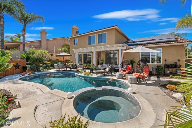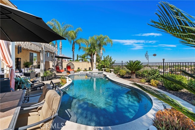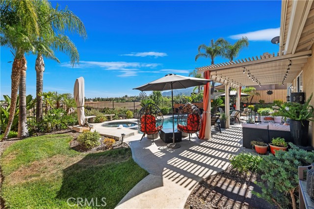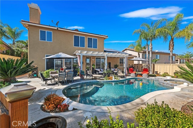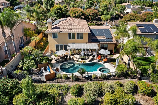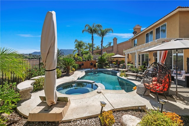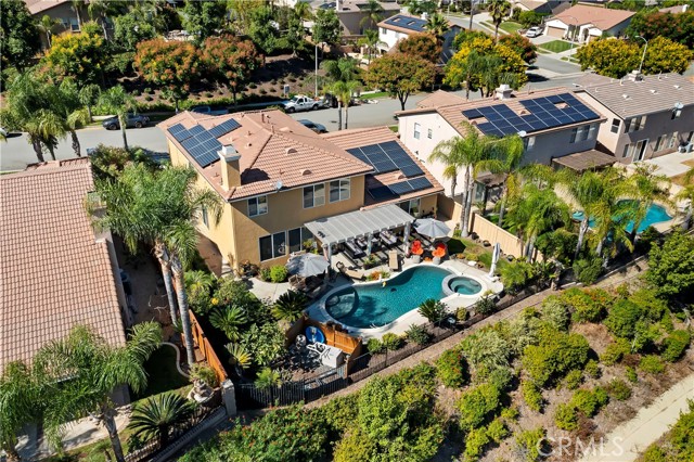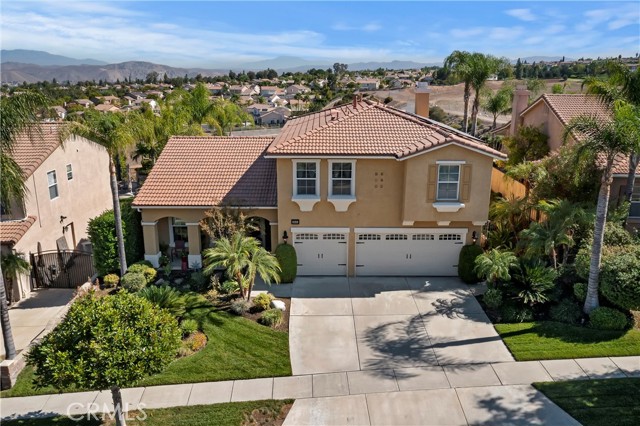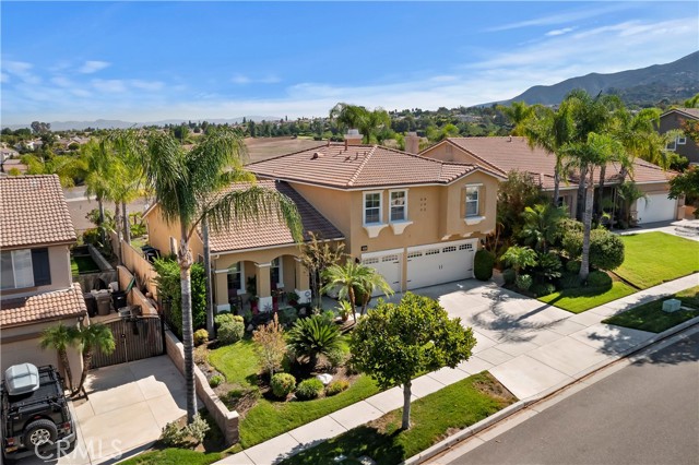 Look No Further! Eagle’s Nest Pool Home with Stunning VIEWS! This home features a wonderful floor plan with 4 generous sized bedrooms, 3 bathrooms, ( with one bed/bath downstairs!) a loft, and with a 3 car garage. You will find tile and carpet flooring throughout. The kitchen is open and airy with backyard views, ample counter space, granite counter tops, stainless steel appliances, and cabinets galore – perfect for any chef’s out there or entertaining in your new home. Upstairs you will find the primary bedroom, large enough to accommodate most any sized furniture, with a generous sized walk in closet along with great sunrise views. The 3 secondary bedrooms are spacious, along with a loft/media room and laundry. The backyard is perfect for entertaining with a sparkling pebble tech pool and spa. Nicely landscaped with fruit trees (fig, apricot and orange), and very private with no one behind you. This home has been very well taken care of with beautiful landscaping front and back. The garage has overhead storage racks, and enjoy your low power bill, as this home has solar! Walking distance to award winning schools, shopping, dining, and Mountain Gate Park, and easy access to the foothill expansion road. Don’t let this perfect home slip through your fingers!
