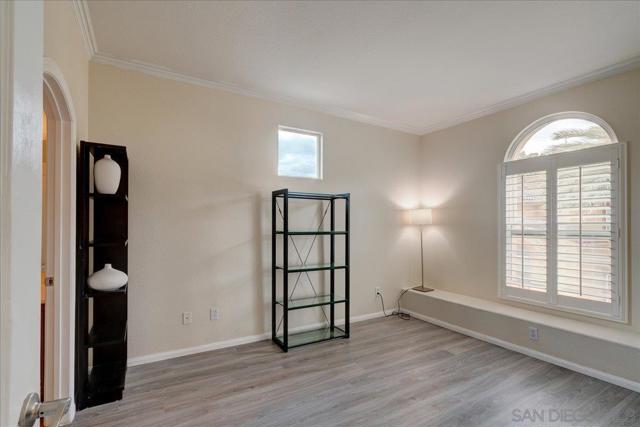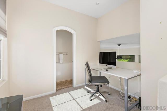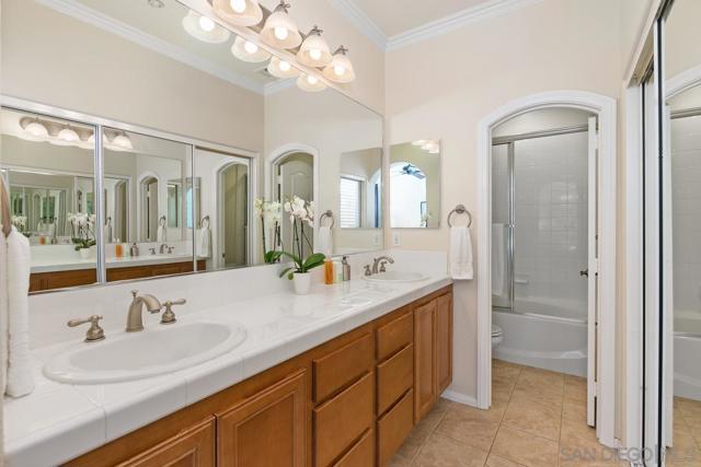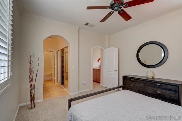Villas at Escala are the only single family detached homes offered in this highly sought after Mission Valley Escala Complex. Rarely on market this open floor plan features 2 master suites and a loft ideal for office/den overlooking the living room with high ceilings and beautifully remodeled kitchen. Many elegant upgrades including new plush carpet, vinyl planks, tile flooring, crown moldling, wainescoating, plantation shutters, ceiling fans and more. Corner lot location, lots of natural lighting, easy maintenance private backyard and 2 car attached garage. Steps to Escala Club’s resort like amenities featuring 2 swimming pools, spa, fitness center, tennis and basketball courts, BBQ & kids play area, dog park, private clubhouse and private trails. Meticulously maintained gated community with private security on site. Across from IKEA/Costco/Lowes shopping center with many shops, restaurants and the new Snap Dragon Stadium for shows and sporting events. Loft/Den can be enclosed for an extra room.