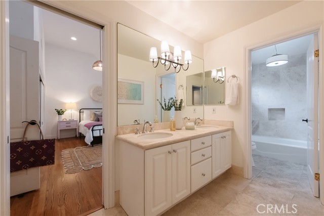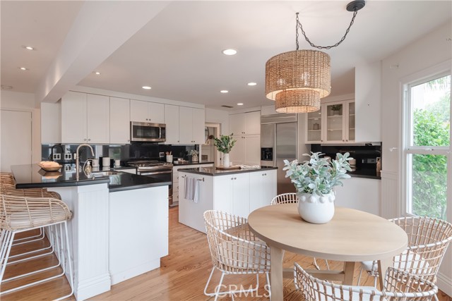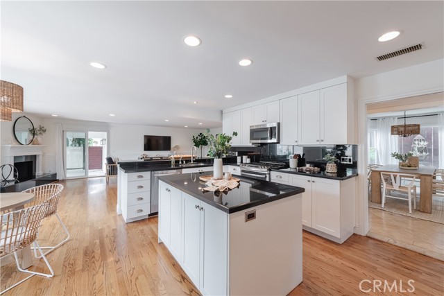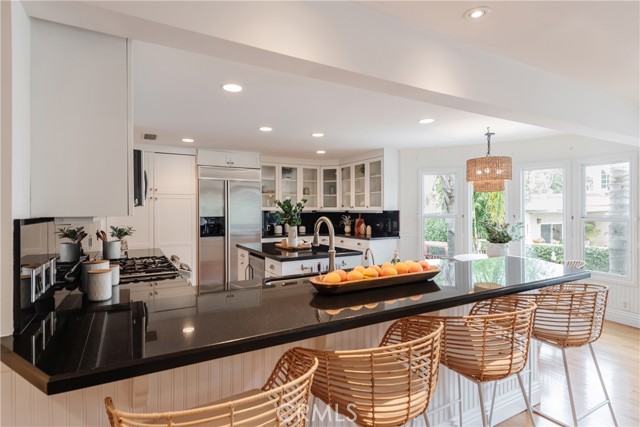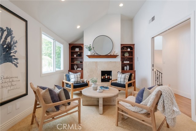 Ideally situated on a corner lot in one of the most inviting neighborhoods in Manhattan Beach’s southern Sand Section is 440 2nd Street, a welcoming four bedroom, three-and-a-half bath home that boasts a traditional floorplan, open spaces, and newly renovated outdoor living areas. A striking entryway with travertine floors and hardwood spiral staircase invites you into the sunken formal living room, with cathedral ceilings, bay window, and beckoning fireplace. The spacious formal dining room is strategically adjacent to the Chef’s kitchen and offers the perfect spot for entertaining friends and family. The open-plan kitchen and family room presents the hub of this hospitable home, with a center island, stainless appliances, countertop seating and a hidden wine fridge. The expansive family room includes a large fireplace and lots of room for gathering and relaxing, and steps out onto the recently renovated covered back patio. The easy-care turf yard winds around the house, newly landscaped with native plants and trees. Upstairs, four bedrooms offer deluxe private living quarters, including an airy en suite guest bedroom or office anchored by a fireplace at one end. The extraordinary Primary Suite is topped with vaulted ceilings and features French doors opening onto a private balcony, while the luxurious en suite Primary Bath comes complete with a soaking tub and shower and dual vanity. Two additional bedrooms are roomy and bright, and a full bath is conveniently nearby. A laundry room and two-car garage are included as well. Sited alongside private and quiet Ingleside Drive, this residence is close to Robinson Elementary, the greenbelt, and the Strand, yet tucked into a peaceful, friendly neighborhood. The ideal coastal home in a picture-perfect location, welcome to 440 Second Street.