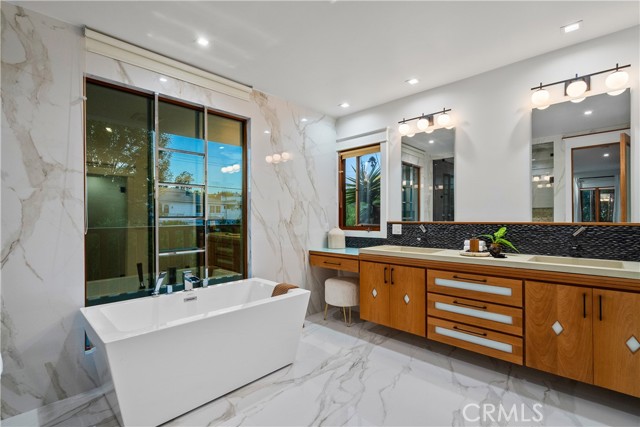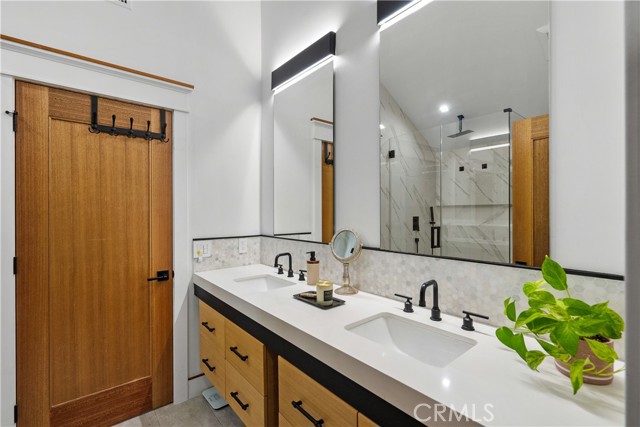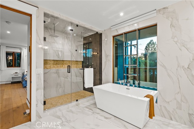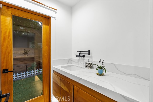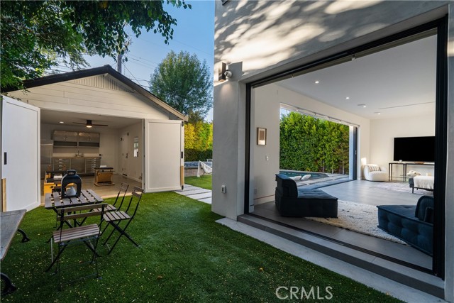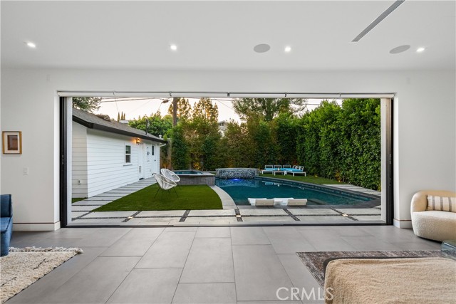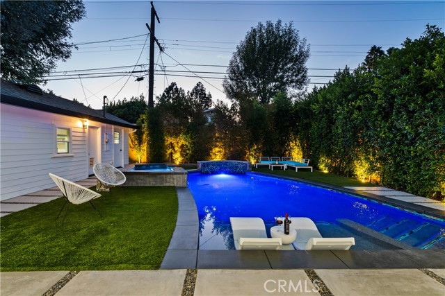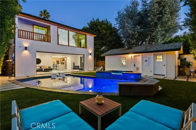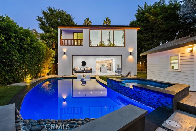 Step into a world where Classic Craftsman Artisanship is combined with modern architecture, luxury, entertaining prowess, and Smart Home convenience. Nestled within the coveted Hollywood Grove HPOZ Community, this radiant apx. 3,000 sqft. residence is a testament to meticulous down-to-the-studs construction and an innovative open-concept floor plan design that results in a masterclass in indoor-outdoor living.rnrnAs you enter this gated sanctuary with soaring ceilings, you are greeted by a symphony of natural light that illuminates expansive windows and ethereal skylights. Remarkable details such as warm custom Mahogany and Brazilian Garapa Wood Accents extend throughout the home and to the exterior.rnYou’ll be captivated by a charming library/den suite adorned with built-ins that is accessed through rich Mahogany Wood and glass folding doors, a gas fireplace, windows that offer glimpses of the lush front yard, and a ½ bath with a progressive lit vanity. rnrnThe Modern Epicurean Kitchen, boasts an expansive waterfall center island, Smart Dacor Black Stainless Steel Appliances, and plenty of storage and flows seamlessly to the rnrnCalifornia Room that allows you to fully take in the expansive backyard oasis through the 2 mind-blowing sets of oversized and disappearing floor-to-ceiling sliding glass Pocket Doors that give way to the ultimate in indoor-outdoor living and entertaining. rnrn… Immerse yourself in a world of relaxation with a pebble tech saltwater pool and spa, a cascading waterfall, and a sauna. Utilize the detached recreation room with a 3/4 bath for wellness or even a guest quarters. The home’s main floor features two generously sized bedrooms connected by a chic Jack and Jill full bath. The private upstairs Primary Retreat offers panoramic tree-top sunset views, a large walk-in closet, and the ensuite bath promises indulgence with a steam shower, deep soaking jetted tub, and a double sink vanity, and . The adjoining bonus/lounge area offers a plethora of possibilities. Home System upgrades all newer electrical and plumbing, dual-zoned HVAC, LG Advanced Technology Washer/Dryer, Tankless Water Heaters for both the main and guest house dwelling, SMART Pool Aqualink 3.0 System, and much more. In proximity to all of Hollywood’s Iconic attractions, Steps away from Franklin Village’s eclectic offerings, close to Griffith Park’s serene hiking-trails, and easy access to conveniences such as Lazy Acres Organic Market.