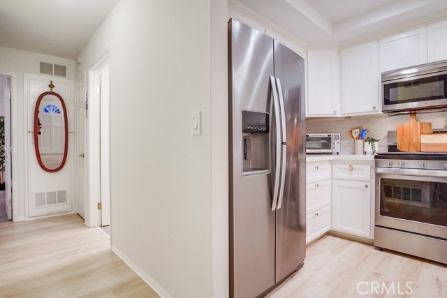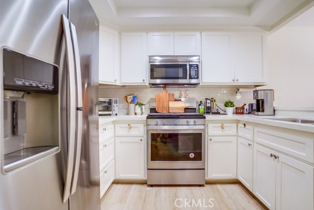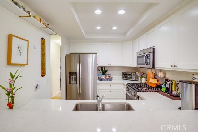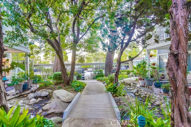 These units don’t come along very often and when they do, they sell quickly. So take advantage of this opportunity to own a wonderful lower unit in the desirable Ponderosa Springs community where you can enjoy year-round resort-style living and a low-maintenance lifestyle. This unit has been nicely upgraded and is just a short walk away from the delightful pool and spa area that is framed by mature trees and lush landscaping to create a very relaxing atmosphere. Spacious living area features a fireplace , unique niche that can be used as a work space and sliding glass doors to access the patio area that is surrounded by lush greenery and makes a great spot to enjoy a morning coffee or a glass of wine at the end of the day. Laminate floors offer a light French Oak wood look and have been installed throughout the living room, sunlit dining area, kitchen and hallway. Bright kitchen features white cabinetry with Shaker doors, quartz counters, pop-up ceiling with recessed lighting, stainless steel appliances and a breakfast bar that’s perfect for those quick informal meals. Large primary suite offers plenty of room for a king-sized bed, a nice walk-in closet and a bathroom that features a walk-in jetted tub. Secondary bedroom makes the perfect nursery, home office or guest room. The hall bath has some upgrades and provides access to the indoor laundry room which is a great convenience. A few other upgrades include smooth ceilings (no cottage cheese here) dual-pane vinyl windows and custom window treatments. For parking there are tandem parking spaces in the covered and secured garage area (spaces 303 & 304). The Ponderosa Springs grounds are beautifully landscaped and combine with the running streams, waterfalls and ponds to create a very tranquil environment that has you feeling like you’re removed from the city. The multiple resort-like pool and spa areas will also have you feeling like you’re on vacation every day of the year. On top of all that, this is a very “walkable” location with local shopping, dining and banking literally less than a block away. And finally, there is easy access to the freeway for those who still commute to work. Complex is also FHA approved. HURRY!!