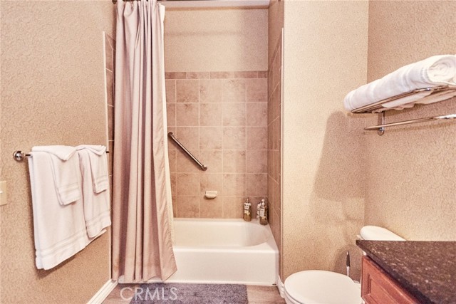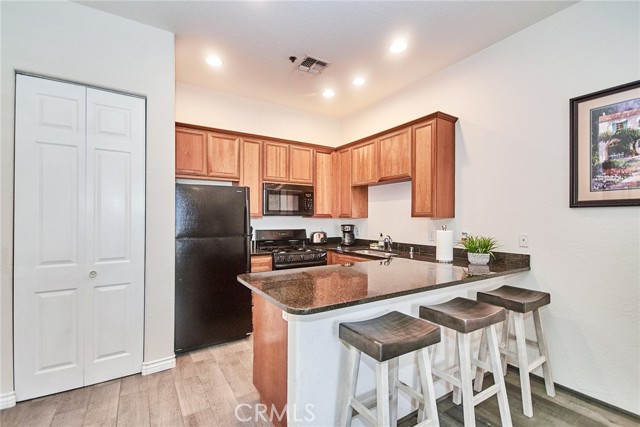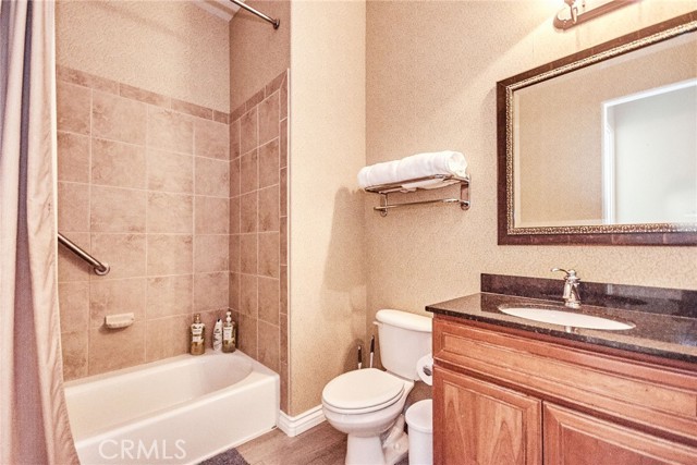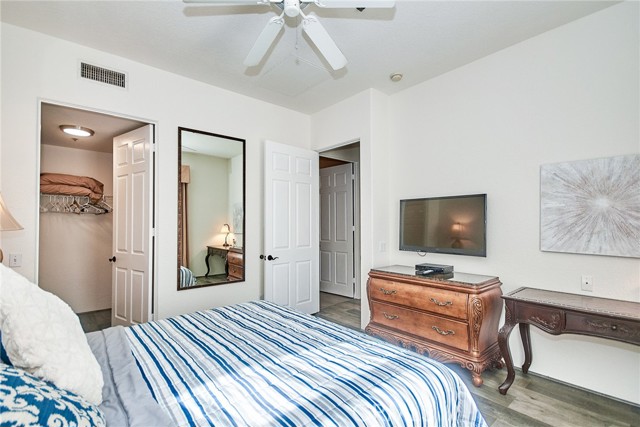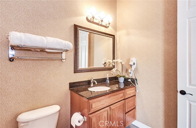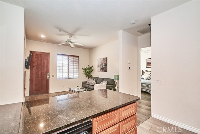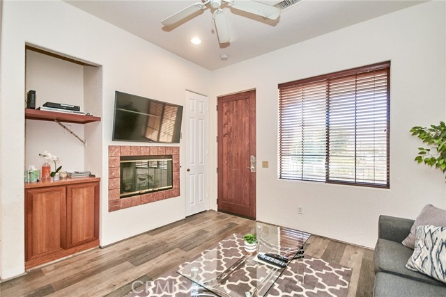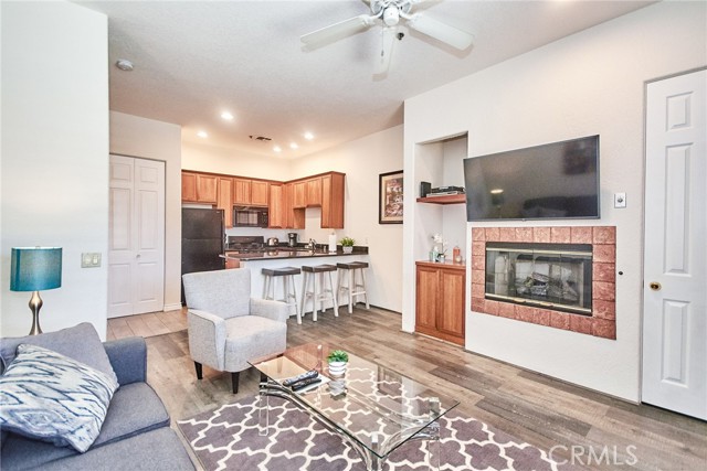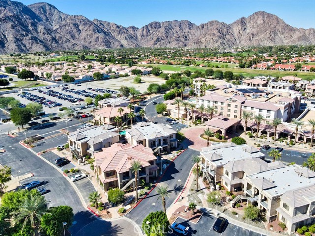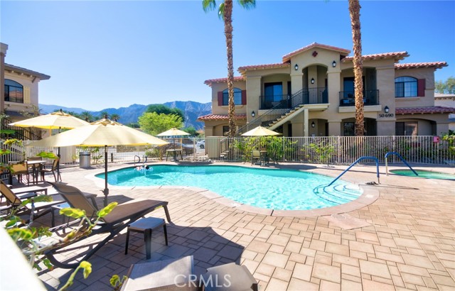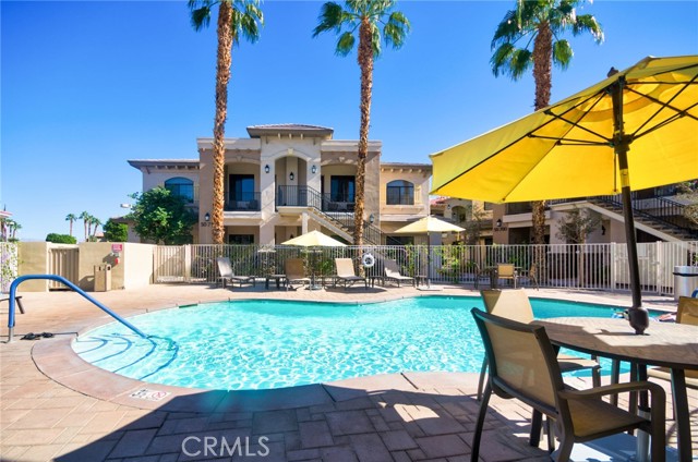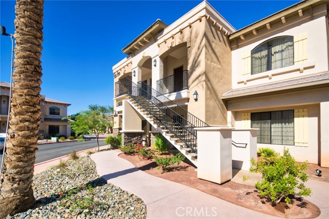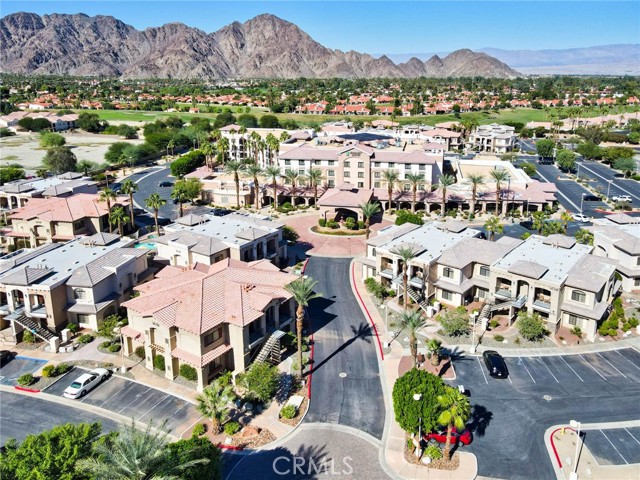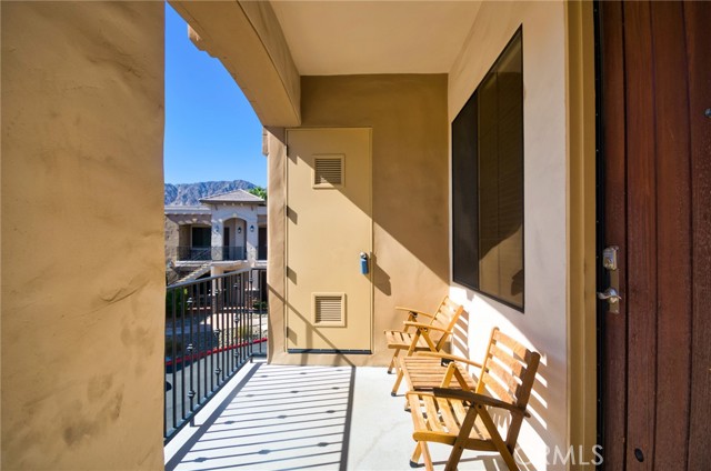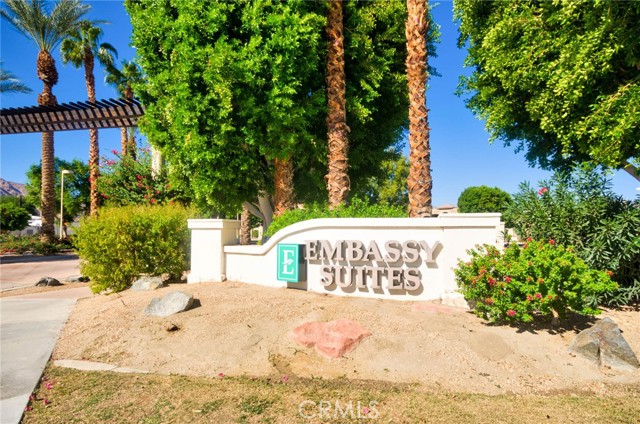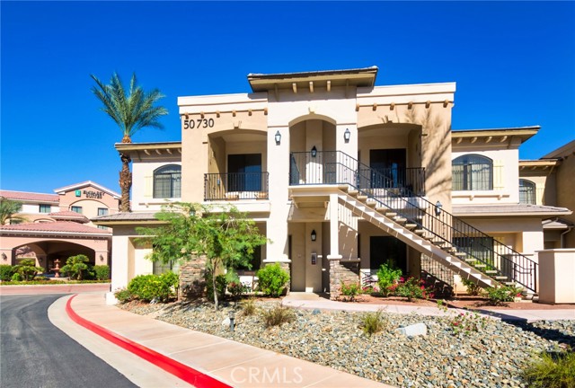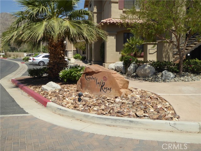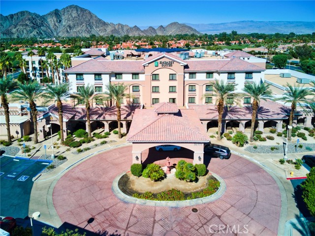 The Gem of the Desert : resort style living at Casitas Las Rosas at the Embassy Suites. GREAT FOR INVESTOR AS this END unit IS USING AS AIR BNB IN LAST 10 YEARS. This turnkey fully furnished and ready to move in upstairs unit has a spacious bedroom with walk-in closet, and nicely sized full bathroom. Private porch overlooking Old Towne La Quint Village. Open floorplan with cozy fireplace in living room. A complete kitchen with granite and bar counters. Fully stocked of all kitchen wares and dishwasher. Ceiling fans, and newer floor. Inside laundry with stackable washer & dryer. High speed wifi and cable ready and 2 flat Screen TVs. Just bring your suitcase and pay gas and electricity. Steps to one of the many community pools and spa. Walking distance to charming Old Towne La Quinta. Old Towne La Quinta is the home of marvelous shops, some of the best Restaurants in La Quinta, farmers market in the season and local art shows. You also can find grocery store, bank branches, convenience store, post office, gas station, library, and La Quinta family center. Short drive to Coachella, Stagecoach, and the BNP Paribas Tennis Tournament. Brand new Acrisure Arena for hockey game and other entertainment will be opene at end of 2022. Publicly accessible golf courses are within a minutes driving distance as well as several parks and recreational opportunities. Virtual tour : https://youtu.be/HURiftRDhHk