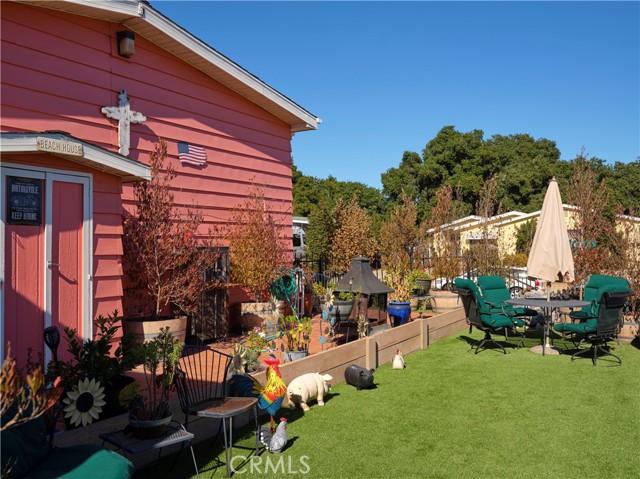 Manufactured home on OWNED LAND. NO space rent or HOA fees. On a permanent foundation with 433A on file so financing is available. Located on a corner lot in Folkert Oaks subdivision in Nipomo. Two car detached garage that would make a great ADU conversion. Interior dimensions of the garage are: 19’6″ wide x 19’4″ deep x 8’3″ ceiling. Garage door is 10′ wide x 7′ tall. Parking for six vehicles in driveway or back your RV/travel trailer in and connect to the RV hookups. 2022 upgrades include: exterior paint, artificial grass, driplines, decomposed granite added in yard, ceiling fans & new luxury vinyl tile flooring on the inside. Interior and kitchen cabinets painted in 2020. Wood pellet fireplace in living room. All of the half wine barrels with planted trees are included in sale. Three wall mounted TV’s, refrigerator, washer & dryer can also be included.