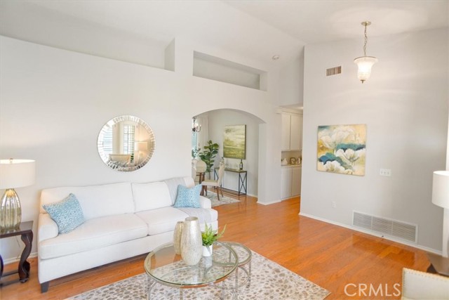 NO MELLO ROOS + LOW HOAS. This stunning single-story home nestled in the picturesque Northbridge area of Valencia. With 2 bedrooms, 2 bathrooms, and a well-thought-out 982 square feet of living space, this 1991-built residence offers comfortable living on a spacious 7,450 square foot lot.rnrnThe interior is a showpiece of sophistication and comfort. The home showcases copper repipe, a newer HVAC system and half the roof replaced to ensure your peace of mind. You’ll love the charm and character added by the cathedral ceilings and shutters throughout, while the skylights flood the space with natural light, creating a warm and inviting atmosphere.rnrnNewer carpet and engineered hardwood floors complement the elegant aesthetic, adding both style and functionality. The great room and hallway have been freshly painted, providing a clean canvas for your personal touch.rnrnNorthbridge is renowned for its wonderful community amenities, including 3 sparkling HOA pools, ideal for cooling off during those sunny Valencia days. The neighborhood offers easy access to the scenic paseos walking trails, tennis courts and parks, making it perfect for outdoor enthusiasts.rnrnBut that’s not all—Northbridge is known for its award-winning schools, providing an excellent educational experience for families with children.rnrnDon’t miss your chance to make this exceptional Northbridge Valencia home yours. With a fantastic combination of indoor upgrades and community amenities, it offers the quintessential Southern California lifestyle.