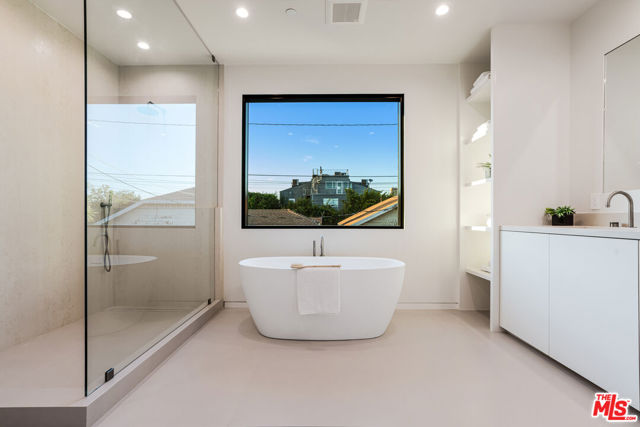 Enjoy the ultimate in Southern California living in this brand-new construction modern home, constructed by luxury builder, Shelter Homes! Upon entry, an abundance of natural light beautifully illuminates the glass staircase, an inviting and striking centerpiece. The main floor features a gourmet kitchen and breakfast area with butler’s pantry, Sub-Zero wine refrigerator, living room with a private patio, dining room, and a family room that opens out to the large yard with pool/spa, expansive barbecue area, as well as an en-suite bedroom. The private yard is expansive & perfect for entertaining with ample grassy areas, BBQ, jacuzzi and thoughtfully designed lounge space. Upstairs you will find 3 en-suite bedrooms, including the tranquil primary suite with a walk-in closet, a fireplace, and a balcony. Continue to the rooftop deck, an unobstructed spot to enjoy the Southern California sunsets and the 180-degree view which includes Downtown. This home is designed with great attention to detail, featuring exquisite finishes and custom fixtures that combine modern design with coastal warmth.12107 Palms offers the perfect blend of contemporary style and luxurious comforts. An extremely convenient location in the Mar Vista Elementary school district ties this all together into a one-of-a-kind, can’t miss new construction!