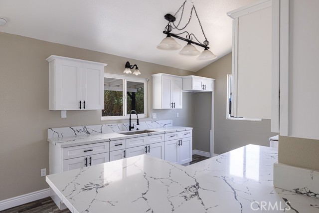 Welcome to North San Bernardino. Property is remodeled. Beautiful home features 3 bed 2 bath. Home was updated with new kitchen with quartz countertops, new interior/exterior paint, vinyl flooring, new bath vanity with faucets & bath hardware, new base boards, led lighting throughout and outlet switches replaced & front yard sod & rock landscaping. Home is located near park and freeways.