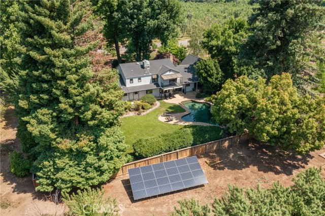 Exceptional country home located on a 9 acre parcel partially planted in red walnuts and less than ONE MILE to Downtown Chico!! The home features 4bedrooms 4baths, custom kitchen, incredible library/office, indoor hot tub, master suite, separate living, family and dining rooms, wood burning stove, brand new carpet, OWNED SOLAR, and a floor plan that lends itself to potential in law/separate living quarters. Outside features an inground pool and covered patio perfect for year round entertaining. The grounds are filled with beautiful, mature landscaping, majestic redwoods and towering oak trees. All around….a very unique and special property. Check it out.