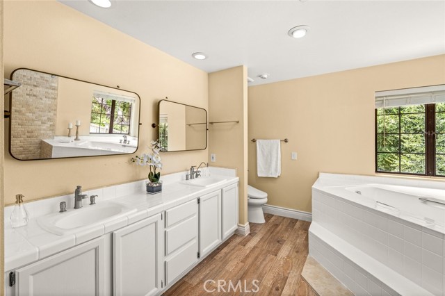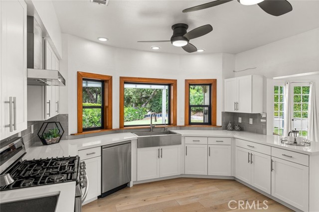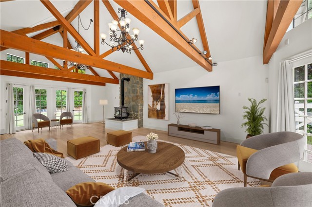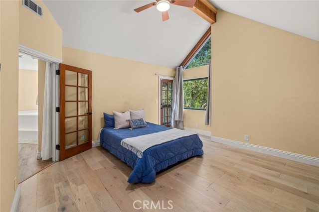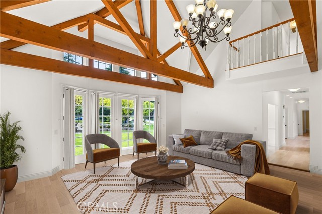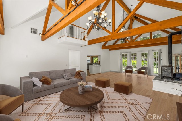 Extraordinary Entertainer’s Sand Canyon Home located in the Prestigious Crystal Springs Community! This Spectacular Model Like Home with Breathtaking Park-Like Backyard has Approx. 1 Acre! Feels like you are at a Yosemite Mountain Resort! As you enter this Impressive Foyer you are in awe with the Architectural and Designers Touch throughout this Upgraded Home with the Gorgeous Wood Flooring, Custom Wood Beams, Wood Framed Windows, High Ceilings and Skylights that make this home Truly One of a Kind. This Captivating Home Boasts 5 Large Bedrooms (One Downstairs), 4 Bathrooms, Tech Center, Downstairs Bonus Room with Separate Entrance and Sink (Could be In-Law-Quarters or for Adult Children), Large Grand Room with Wood Burning Fireplace, Stone Hearth, Custom Wood Beams and French Doors leading to the Lush Enormous Backyard. Feels like a 4,000 Sq. Ft. Home! Upgraded Chef’s Kitchen with Quartz Counter Tops, Preparation Sink along with a Large Stainless Steel Sink overlooking the Enchanting Backyard, Stainless Steel Appliances & lots of Counter Space. Perfect for the Celebrity Chef! Large Family Room with Fireplace overlooking the Serene Backyard and Separate Formal Dining Room. Great for Family Gatherings. As you meander upstairs you are drawn to the Huge Master Suite with High Ceilings, Separate Sitting Area, Large Walk-In Closet with Custom Built-Ins and a Fabulous Balcony with Picturesque Views! Perfect for watching the Magnificent Sunsets! Luxurious Master Bathroom with Separate Oval Tub & Walk-In Travertine Shower. Feels like you are at a Spa! Large Secondary Bedrooms. Features include Gorgeous Wood Flooring, Custom Wood Beams, High Ceilings, Skylights, Large Laundry Room, Raised Baseboards, Professionally Painted & Newer Roof. Lush Private Backyard with Covered Patio, Stunning Outdoor Lighting and Professionally Hardscaped & Landscaped. Feels like you are at a Mountain Resort! This Exceptional Backyard has Plenty of Room for Guest House, ADU, Sports Courts, Horses and so much more. 3 Car Garage with Newer Designer Garage Door, Large Driveway with Room for approx.. 5 cars & Direct Access. Thousands of dollars in upgrades. No Expense Left Unturned at this home. Close to Award Winning Schools, Shopping & Easy Freeway Access.