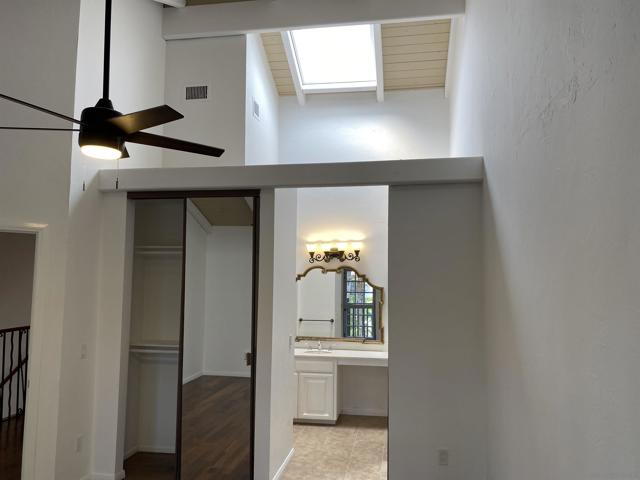 BRIGHT, SUNNY, PLAN E IN QUIET, PRIVATE LOCATION BOASTS, FRESH PAINT, ADDED WORK STATION, REMODELED BATH, TILE FLOORING, PANEL DOORS, CEILING FANS, MIRRORED WARDROBES, DRAMATIC VOLUME CEILINGS, SKYLIGHTS, NEW DISHWASHER, RANGE, & MICROWAVE, AND MORE! IF YOU LIKE SPANISH ARCHITECTURE, YOU WILL GET WEAK IN THE KNEES FOR THIS BEAUTY. ENJOY MORNING COFFEE OR EVENING WINE ON YOUR OWN PRIVATE DECK. SELLER SELECTS SERVICES. PRICED FOR IMMEDIATE SALE- HURRY!