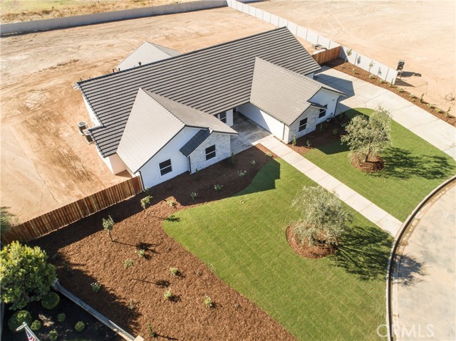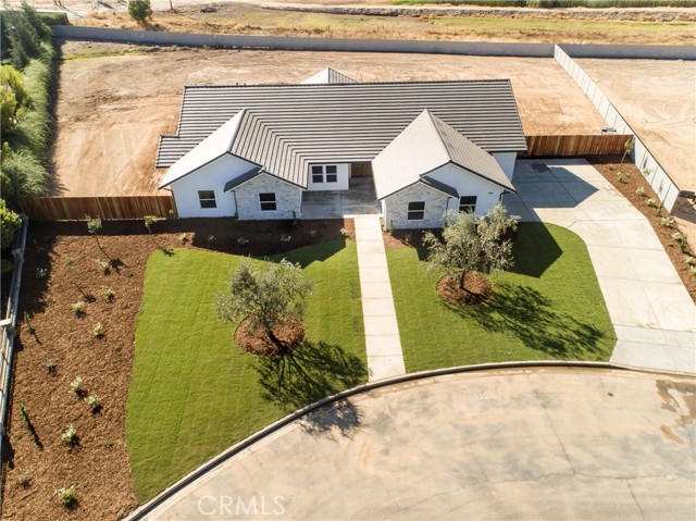Wow – this is what you have been waiting for – brand new home in Continental Estates! Beautiful 3219 square foot home on 1+ acre lot with room for pool, shop, garden and more! Front courtyard welcomes you into the home, where you will find an inviting great room with fireplace and soaring ceiling, open to kitchen and eating area, with separate dining room for those special occasions. The kitchen features an island with extra storage areas, 6 burner stove, quartz counters with designer tile backsplash, alder wood stained soft close cabinet, and pantry. There is a bonus room off of the kitchen that can be used as a study, office, den or play room – many possibilities here! The bedroom wing has a private master suite with oversized tiled shower, closet and extra cabinets, with three more spacious bedrooms around the corner. There are many upgraded features throughout, including quality flooring, crown molding, tiled tub/shower combinations, hand textured interior walls, canned lighting – lots of extra touches. The attached 1,033 sq ft fully finished garage can easily hold 3 cars with room for your golf cart or work area. Owned solar panels are included to keep power bills low. Drought conscious front landscaping is designed to help reduce water consumption. Lot is completely fenced and backs into farmland for additional privacy. All this in a beautifully maintained neighborhood – no need for an HOA! Come see for yourself!