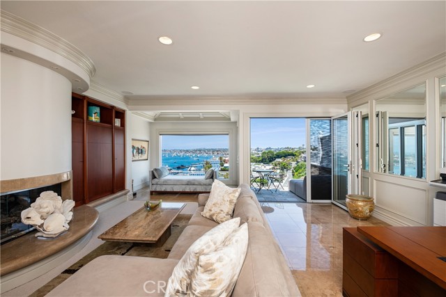 THE BEST VIEWS IN CORONA DEL MAR!! Reduced by $195,000. Exciting Exterior Transformation Underway at the Building with estimated completion December 2023. All new construction costs have been fully paid by the owner! The building’s exterior will soon feature entirely new sleek smooth stucco, a new metal roof, new stunning balconies, new metal garage doors, and new elegant light fixtures. Experience the epitome of coastal living in this stunning CDM residence, located on one of the most coveted blocks and the only private half-street in the village. Indulge in awe-inspiring panoramic views of Newport Harbor, Catalina Island, city lights, and the captivating California coastline. The juxtaposition of the majestic white-water scenery against the coastal landscape creates a truly remarkable masterpiece that showcases the exceptional value and uniqueness of this home. With Two beds, two baths, this residence is expertly designed for sophisticated entertaining. The lavish master suite boasts a spacious walk-in closet, a magnificent ensuite bathroom with dual sinks, a jacuzzi tub for ultimate relaxation, and a separate walk-in steam shower. No detail has been overlooked, as this home is equipped with a Viking 6-burner range and oven, top-of-the-line Sub-Zero refrigeration system, all other top appliances, Berber carpet, and beautifully polished travertine marble floors. The built-in cabinetry offers ample storage space throughout and adds a touch of elegance to the overall aesthetic. One entirely built-in closet is temperature controlled and cedar lined. The only residence on the street with a full backyard/patio with plenty of space including a fountain, fireplace and BBQ area overlooking the bay. Embrace the ultimate luxury living with this impeccable property. THIS HOME IS AN ABSOLUTE MUST SEE!!