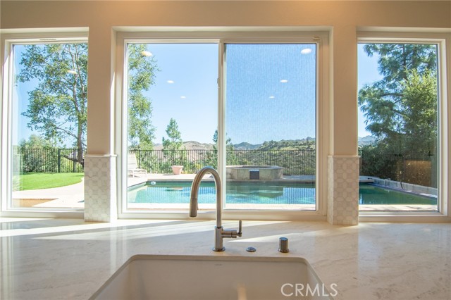 Gorgeous 4 bed 4 bath pool home with panoramic views of the Santa Monica Mountains. Large upstairs bonus room and downstairs office could easily be converted to 5th and 6th bedrooms if desired. Remodeled in 2023 with luxurious finishes throughout and the roof was redone in 2021. Work was done for the owner of 23 years, this is not an investor flip! Downstairs features a gourmet chef’s kitchen, living room, family room, office, formal dining room, laundry room, guest bathroom, and downstairs bedroom with private en-suite bathroom. Upstairs is the updated primary retreat with designer shower, jetted tub, two walk in closets and panoramic views from every window. Also upstairs are two other bedrooms, a bathroom with dual sinks, tub, and shower, and the oversized bonus room that can be used as an additional bedroom, home theater, gym, studio, or anything else your imagination desires. This executive style home also boasts a three car garage, dual zoned HVAC, wrought iron fencing, and views, views, views! The property line goes beyond the fence offering immense opportunities to expand the property with an ADU, deck, vineyard or more. Custom heated pool and spa with pebble tech finish and option to add motorized cover. Rare opportunity to own one of Three Spring’s finest properties.