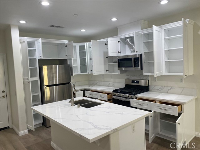 Remodeled! Beautiful Ontario townhome located in the gated Parkside community. 3 bedrooms, 2.5 bathrooms, 2 car attached garage. Bright open floor plan, spacious living room. Brand new kitchen with center island, quartz counter tops, white cabinets, stainless-steel appliances, including new stove, microwave, and dishwasher. Large master bedroom with walk-in closet, master bathroom with dual sinks. Other features include: Downstairs with New water proof laminated wood floor, upstairs with new laminated floor, recessed lights, new interior paint, custom window blinds, new recessed lights,tank-less water heater, upstairs laundry room. Low HOA dues and Low tax rate only 1.1%. Parkside Community amenities include oversized swimming pool, club house, community park, fire pit area, and playground. Convenient location, easy access to Freeway 10, 15 and 210. Next to Cucamonga-Guasti Regional Park. Minutes away from Ontario International Airport , Metrolink stations and Ontario Mills, Victoria Garden.
