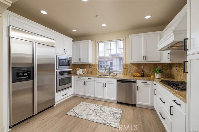 Light, Graceful Luxury at Ziani. Set in one of Newport Coast’s most coveted gated communities, this ravishing 2 bed/2 bath home combines contemporary style and amenities with a touch of timeless charm. Arrive to a stone-and-stucco facade and tiled roof evoking classic Tuscan villas. Covered entry gives way to a formal foyer and quality wide-format flooring and new carpeting that continues throughout the interior. Entertainer’s main level blends living and dining in a light-filled open concept complete with gas fireplace and updated lighting, and seamlessly integrated with the updated white-and-granite kitchen equipped with a suite of KitchenAid and GE Profile stainless steel appliances. Glass exterior doors invite natural light and outdoor living on two separate balconies off the main living space, each offering a shaded retreat with views of the community, canyons and glimmering city lights. Another private balcony is found off the primary bedroom, which hosts a luxurious en-suite bath with a gorgeous custom shower, spacious double-sink vanity and expansive walk-in closet with built-in organizers. Throughout the home, stacked-stone wall accents add a soothing, natural touch that expertly complements the modern design elements. Amenities include in-unit washer and dryer, 2-car attached garage, and easy access to the community clubhouse and pool. All only moments from freeways, beaches, state parks, and world-class shopping and dining. An incredible home and location!