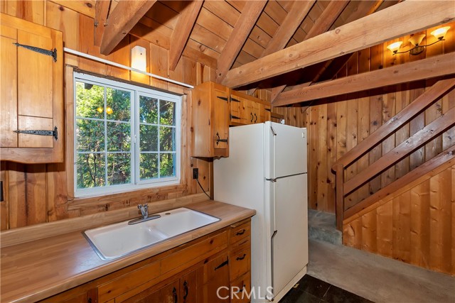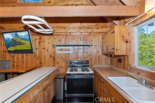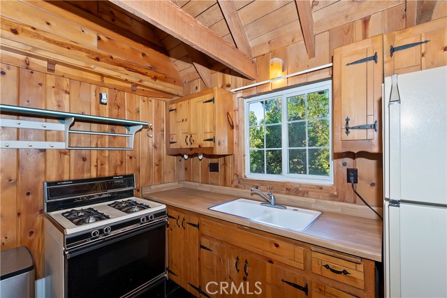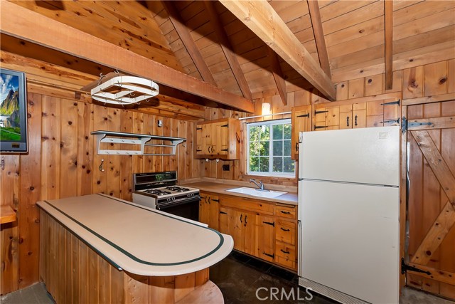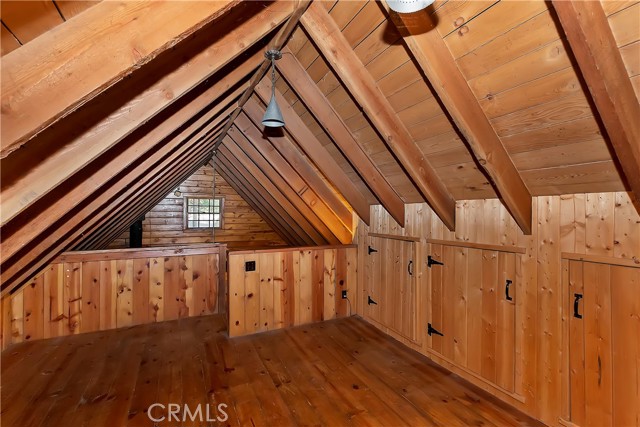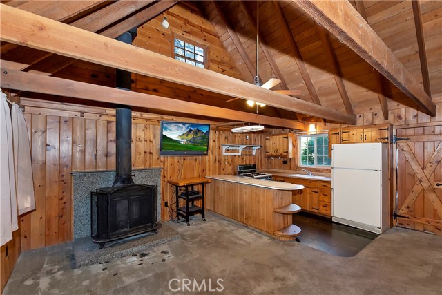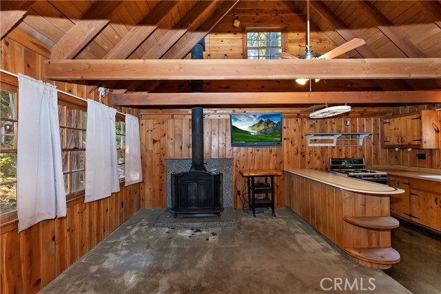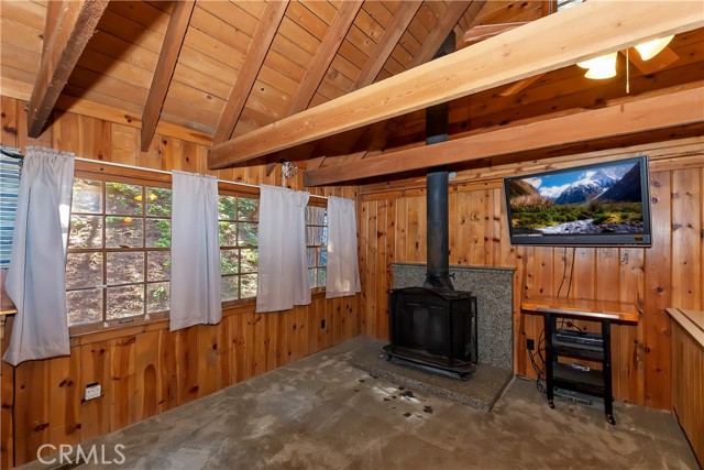 Highly desirable neighborhood! Home features open concept living room with vaulted tongue & groove ceiling, fan, and wood burning stove. Bright kitchen with breakfast bar. Oversized primary bedroom, full bath, and convenient indoor laundry closet complete the main level. Upstairs to the quintessential mountain loft with storage. Larger tree-filled lot for that charming mountain setting. Very short distance to Lake Gregory, shopping, restaurants, and much more. Full Authority Probate Sale.