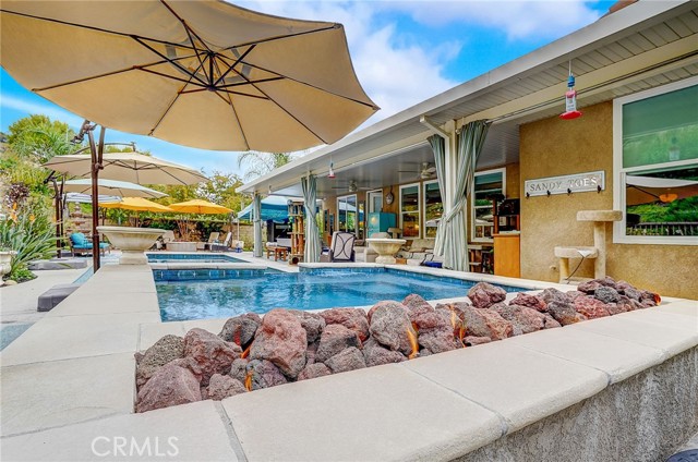 Welcome to Your Dream Home in the Heart of Corona!rnNestled in one of Corona’s most coveted neighborhoods, this immaculate single-story residence is the epitome of luxury living. Boasting meticulous upgrades from top to bottom, this 3-bedroom, 2.5-bath home is a true masterpiece. As you step inside, you’ll be captivated by the seamless blend of modern elegance and serene comfort. Every inch of this home has been thoughtfully upgraded to perfection. From the moment you enter, you’ll notice the fine craftsmanship and attention to detail, offering a truly turnkey experience for the new homeowner. This single-story layout is designed for both convenience and style. The generous living spaces flow effortlessly, providing an ideal setting for both everyday living and entertaining guests.rnStep into your backyard paradise, where lush vegetation surrounds your private sanctuary. The pristine pool and jacuzzi offer relaxation and leisure under the warm California sun, making it the ideal space for endless summer days and starlit evenings. The chef’s kitchen is a culinary masterpiece, complete with high-end appliances, beautiful countertops, and a layout that invites you to create unforgettable meals. This exceptional property offers a lifestyle that combines luxury, comfort, and natural beauty in a unique and highly sought-after location. Don’t miss this rare opportunity to make it yours.