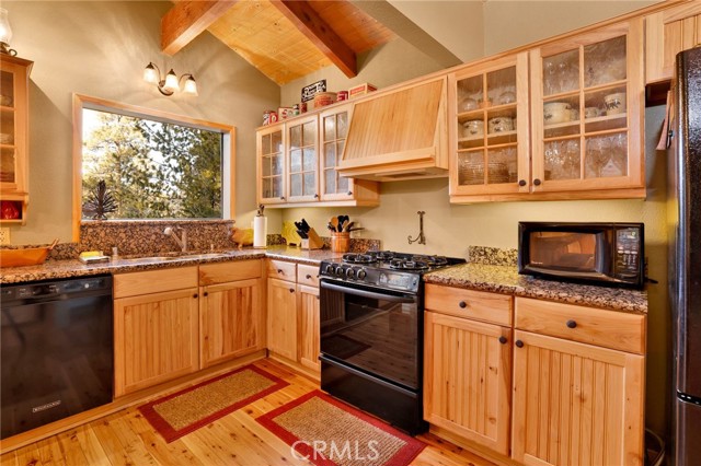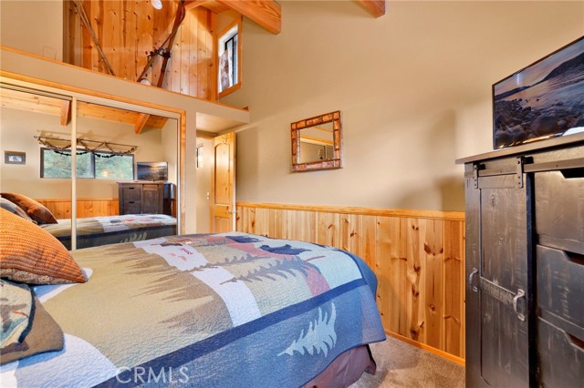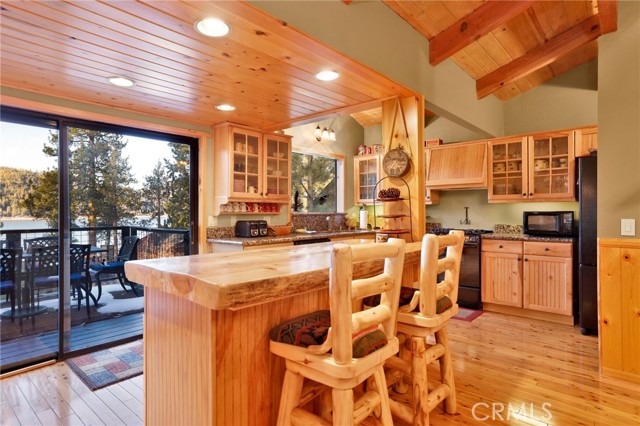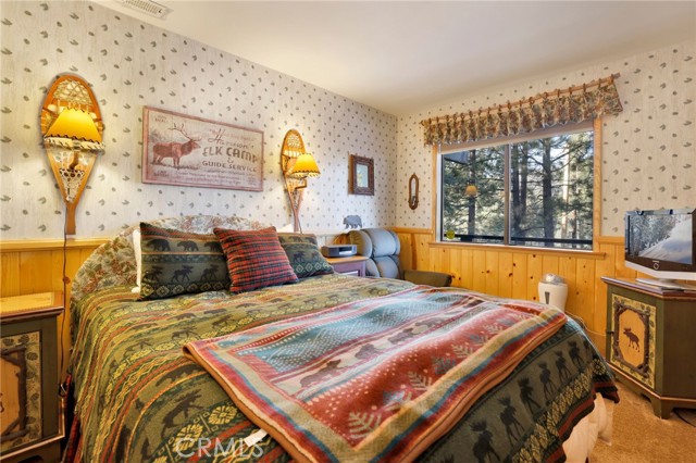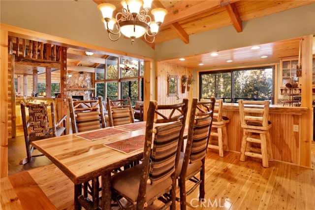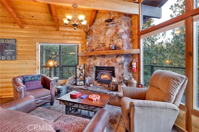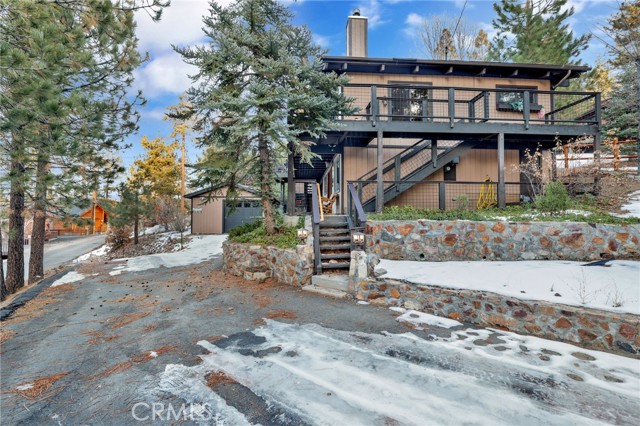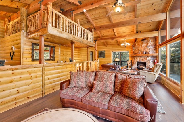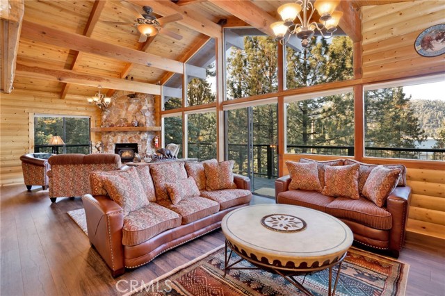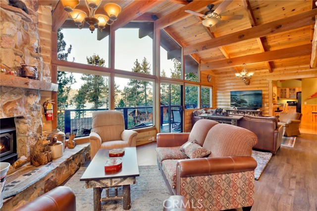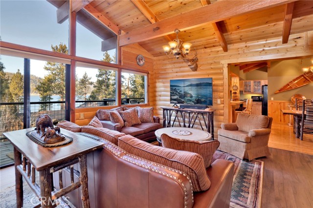 This stunning house boasts 4 bedrooms, 3 bathrooms, and stunning panoramic views of Big Bear Lake. Recently remodeled interior includes lots of knotty pine, half-log siding, and custom log accents and trim. Spacious living area with vaulted wood beamed ceilings and an impressive wall of glass overlooking the lake, floor to ceiling native stone fireplace with insert, and newer luxury vinyl flooring. There’s a nice bonus area for games, entertaining, etc, as well as a kid’s loft, and wet bar with copper tin ceilings. Open kitchen and dining area with wood flooring, granite countertops, hickory cabinets and a walk-in pantry. Tons of outdoor space, including wrap-around decking with new rail system, and nice searing area for those afternoon sunset BBQs. Horseshoe driveway for convenient access, and a very large amount of parking space for the guests. Don’t miss your chance to own a piece of paradise!